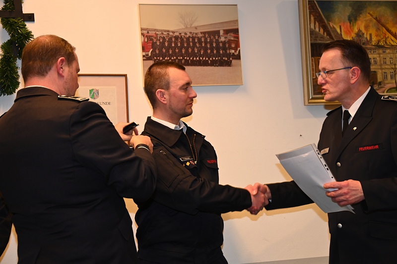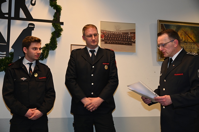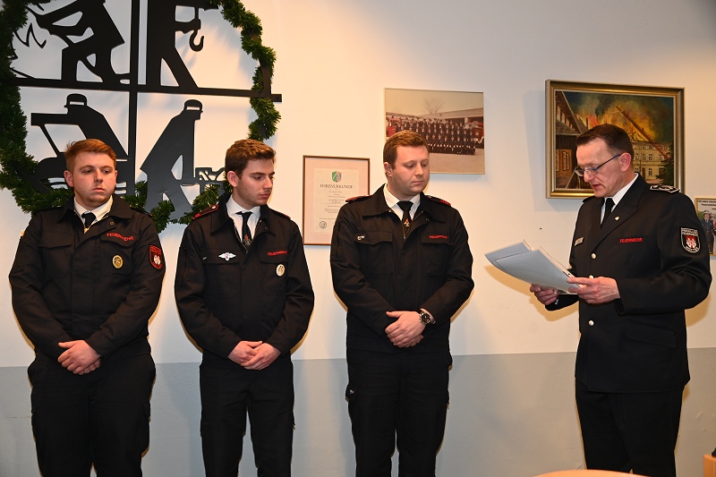 Das Bronzeabzeichen des Verbandes der Feuerwehren für 10 Jahre Feuerwehrmitgliedschaft erhielten die Oberfeuerwehrmänner Maximilian Schelhorn und Timo Hellwig sowie Unterbrandmeister Christopher Döring. Zu Brandinspektoren befördert wurden André Kasten und Patrick Warneke. Eine Beförderung zum Oberfeuerwehrmann bzw. zur Oberfeuerwehrfrau erhielten Lilli Beverungen, Sandro Dobitz, Torben Kampelmann, Moritz Rosen, Nico Schmidt sowie Maximilian Schelhorn. Vom Anwärter zum Feuerwehrmann ernannt wurde der Quereinsteiger Detlef Beverungen und aus dem aktiven Feuerwehrdienst verabschiedet und in die Ehrenabteilung überstellt werden konnte Brandinspektor Uwe Heidrich. Folgende Leistungsabzeichen verlieh Rainer Höppner an die Teilnehmenden: Gold mit 35 Teilnahmen erhielt Brandinspektor Holger Dittrich, Gold mit 15 Teilnahmen ging an den Unterbrandmeister Stefan Schlothane, Silber (5) an Oberfeuerwehrmann Maximilian Schelhorn und Bronze (1) an Detlef Beverungen, Timo Hellwig und Moritz Rosen. Einen Wechsel in der Gruppenführer vollzog Zugführer Steven Noble: Demnach ist Unterbrandmeister Björn Wohlert der neue Gruppenführer der Gruppe 1. Er löst Brandinspektor Sascha Kamp ab. Und in der Gruppe 2 tauschten die Brandinspektoren Christopher Ulrich (jetzt Stellvertreter) und André Kasten (neuer Gruppenführer) ihre Gruppenführer-Ämter.