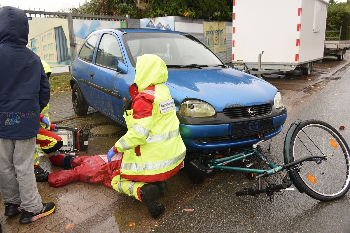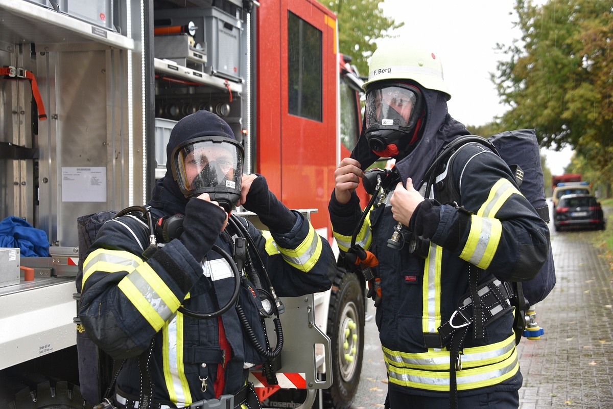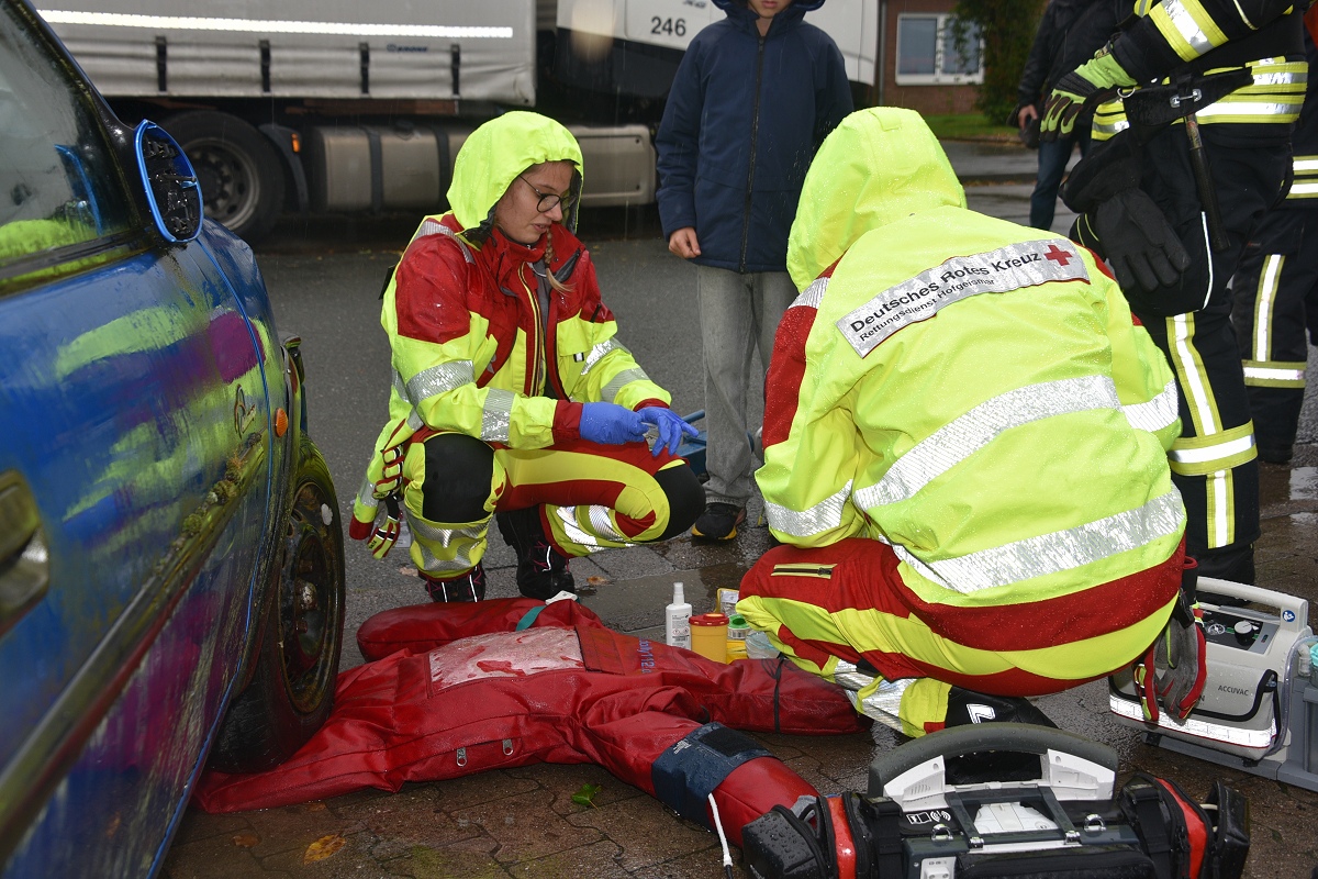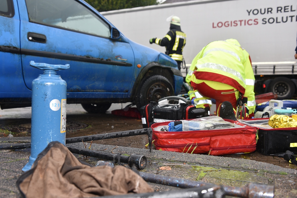 Die Übung war in vier Szenarien gegliedert, die an unterschiedlichen Orten in Beverungen und Dalhausen stattfanden. Bei einer Übung im Industriegebiet Beverungen mussten die Einsatzkräfte ein Kind retten, das unter einem Pkw eingeklemmt war. Da passendes technisches Gerät nicht verfügbar war, stand die Feuerwehr vor einer kniffligen Aufgabe und musste mit dem vorhandenen Material improvisieren. Parallel kümmerte sich der Rettungsdienst um die Versorgung des kleinen Patienten. „Für sie eine besondere Herausforderung, da Medikamente bei Kindern exakt nach Körpergewicht dosiert werden müssen“, sagt der Feuerwehr-Ausbilder und Notfallsanitäter Jan Nolte, der für dieses Szenario verantwortlich war und auch seine Kinder Lennart (10) und Jonathan (7) als vom Einsatz betroffene Kinder eingebunden hat. Ein weiteres Szenario führte die Kräfte in die verwinkelten Versorgungsgänge der Stadthalle Beverungen, in dem eine Brandmeldeanlage ausgelöst hatte. Die Ursache: Ein Brand mit einer starken Verrauchung in einem Technikraum. „Unbekannte Fluchtwege und die Orientierung über Feuerwehrpläne machten die Lage anspruchsvoll“, erklärte Alexander Bönning. Während die Feuerwehr im Inneren tätig war, blieb der Rettungsdienst in Bereitschaft und musste nachher doch noch einen kleinen Patienten mit einer Rauchgasvergiftung behandeln.