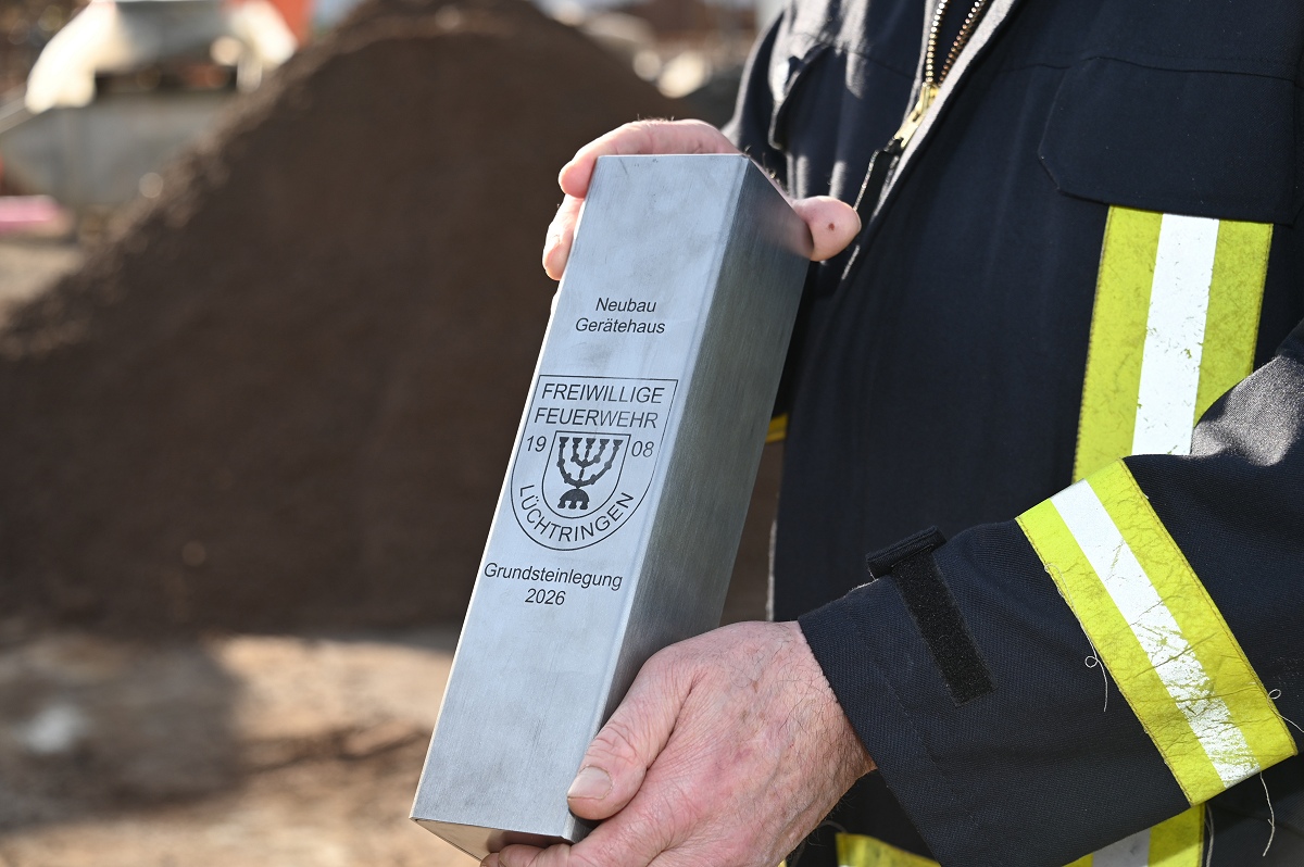 Errichtet wird das neue Feuerwehrgerätehaus am bisherigen Standort in der Allenbergstraße. Dort entsteht ein modernes und zukunftsfähiges Gebäude, das optimale Voraussetzungen für Einsätze, Ausbildung und das kameradschaftliche Miteinander bietet. Bürgermeister Daniel Hartmann hob beim Baustart die Bedeutung der Investition hervor: „Mit dem Neubau des Feuerwehrgerätehauses investieren wir gezielt in die Sicherheit unserer Bürgerinnen und Bürger und stärken zugleich das Ehrenamt vor Ort. Die Löschgruppe Lüchtringen erhält damit ein Gerätehaus, das den heutigen Anforderungen entspricht und Raum für die Zukunft bietet.“ Das neue Gebäude ist klar strukturiert und gliedert sich in zwei Funktionsbereiche: eine eingeschossige Fahrzeughalle sowie einen zweigeschossigen Sozialtrakt. In der Fahrzeughalle werden künftig drei Stellplätze für Einsatzfahrzeuge sowie die notwendigen Nebenräume zur Verfügung stehen. Ergänzt wird dieser Bereich durch eine separate Garage für ein Boot. Der Sozialbereich umfasst im Erdgeschoss Umkleideräume, getrennt nach Geschlechtern, mit insgesamt 53 Spinden für Männer und 8 Spinden für Frauen. Die angrenzenden Sanitärräume bilden eine funktionale Pufferzone zwischen Umkleiden und Fahrzeughalle. Im Obergeschoss entstehen ein rund 100 Quadratmeter großer Fortbildungsraum, weitere Sanitäranlagen sowie ein Büro für die Feuerwehr.