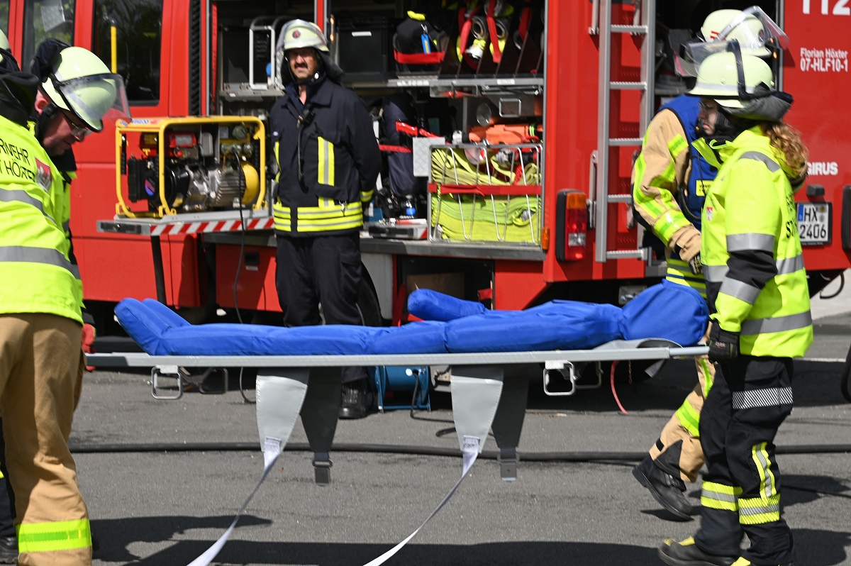 Ein besonderer Anziehungspunkt waren die Vorführungen und eine kleine Fahrzeugschau. Neben den Einsatzfahrzeugen der örtlichen Kräfte aus Bödexen und Fürstenau präsentierte der Löschzug Höxter unter anderem seine Drehleiter sowie seinen Rüstwagen. Auch der Einsatzleitwagen 2 des Kreises Höxter war vor Ort und stellte seine neue Drohnenstaffel vor, die bei Einsätzen zunehmend an Bedeutung gewinnt. Ergänzt wurde das Programm durch die Rettungshundestaffel Höxter-Lippe, die mit einer Vorführung eindrucksvoll ihr Können demonstrierte. Unter der Federführung von Hundeführerin Jutta Sprenger gewährte die Hundestaffel Einblicke in die Ausbildung der Rettungshunde und demonstrierte das Anzeigen von Personen mit dem sogenannten „Verbellen“, wie es der Fall ist, wenn eine Person beispielsweise im Wald durch den Hund aufgefunden wird.