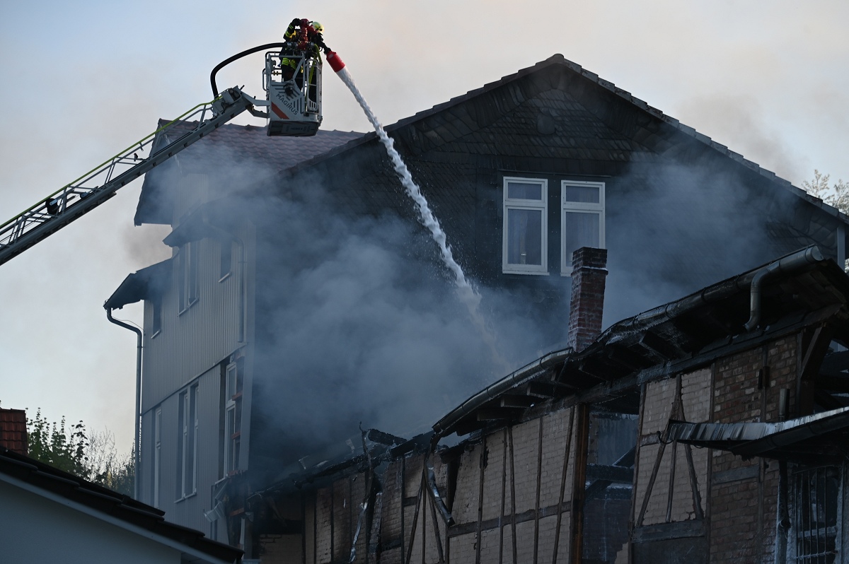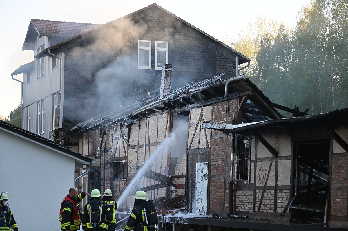 Beverungen (red). Nach dem Großbrand am Donnerstagnachmittag auf dem Gelände des Alten Bahnhofs in Beverungen liegen inzwischen weitere Erkenntnisse zum Einsatzverlauf und zum Ausmaß der Schäden vor. Demnach bestätigte sich, dass das Feuer im Bereich eines Anbaus ausbrach und sich von dort rasch ausbreitete. Eine Zeugin hatte gegen 16 Uhr Rauch aus dem Anbau des früheren Bahnhofsgebäudes bemerkt und die Einsatzkräfte alarmiert. Beim Eintreffen von Feuerwehr und Polizei stand der Dachstuhl bereits in Flammen, gegen 17 Uhr war er vollständig ausgebrannt. Das Feuer beschränkte sich nach Angaben der Einsatzleitung auf den Anbau, in dem unter anderem städtische Notunterkünfte untergebracht waren. Das angrenzende Gebäude mit einer Asylbewerberunterkunft blieb relativ verschont, wurde jedoch durch Hitze und Rauch ebenfalls in Mitleidenschaft gezogen. Die Feuerwehr kühlte das Gebäude vorsorglich dauerhaft, um ein Übergreifen der Flammen zu verhindern. Nach ersten Einschätzungen kann es vorerst nicht mehr bewohnt werden. Ein Anzeichen dafür sind die ausgelösten Rauchmelder im Gebäude, die auch am Abend noch lautstark schrillten. Das bedeutet, dass Rauch weit bis in das Wohngebäude vorgedrungen ist, wie die Feuerwehr erklärte. Die Bewohner wurden zunächst an anderen Orten untergebracht.