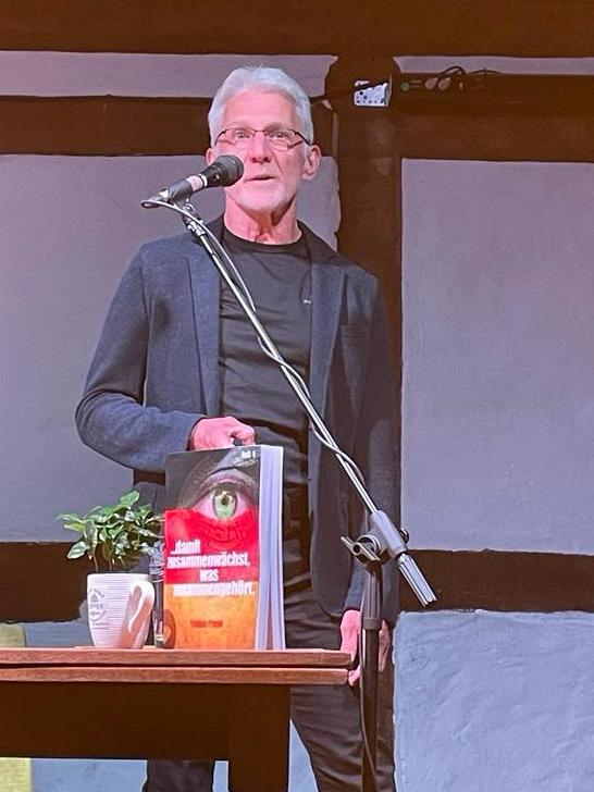 Frank, der die Wendejahre 1989/1990 in der Region Chemnitz miterlebt hat, stellt sein Buch „… damit zusammenwächst, was zusammengehört“ vor. Darin geht es um Spannungen zwischen demokratischer Beteiligung und autoritären Denkweisen. „Im Mittelpunkt stehen dabei Spannungen zwischen demokratischer Beteiligung und autoritären Denkweisen, zwei Aspekte, die in der Zeit von Ost- und Westdeutschland eine große Rolle spielen“, erläutert Mitinitiator Helmut Lensdorf.