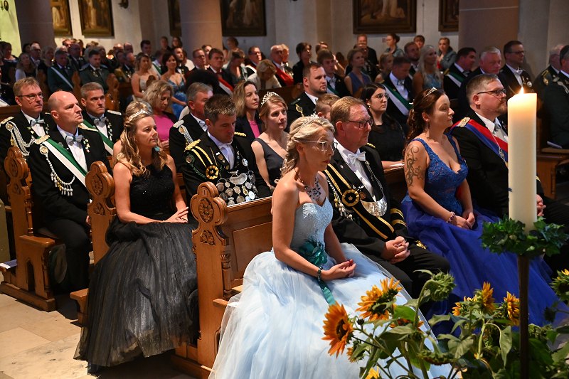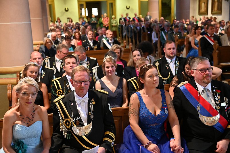 Das „royale Gipfeltreffen“ startete mit einer heiligen Messe in der Nikolaikirche in Höxter, die von Bezirkspräses Stefan Schaller zelebriert worden war und mit einer königlichen Verabschiedung und der Verleihung der Königsorden in einem würdigen Rahmen endete. Die Königsorden wurden vom ersten Brudermeister Stefan Berens und Oberst Thomas Buch an die kürzlich ausgeschiedenen Bödexer Majestäten Wolfgang und Marion Schröder verliehen, die als amtierendes Bezirkskönigspaar noch immer in Amt und Würden stehen. Den Königs- bzw. Königinnenorden erhielten jedoch nicht nur sie, sondern auch das ausgeschiedene Bödexer Jungkönigspaar Enrico Voß und Stella Bierstedt verliehen. Sowohl das Alt-, als auch das Jungkönigspaar wurden würdevoll mit einem Gedicht sowie einem kurzen Rückblick auf ihre Amtszeit und das glanzvolle 400-jährige Jubiläumsschützenfest von Bödexen in der Kirche verabschiedet.