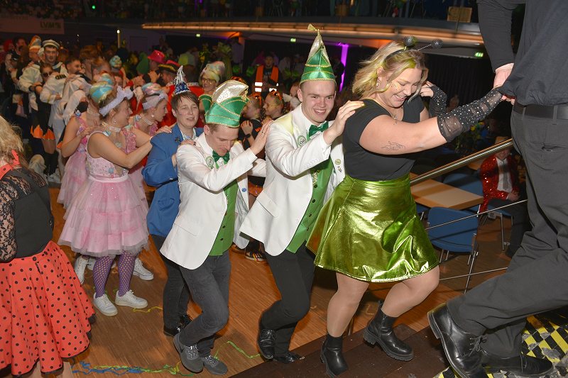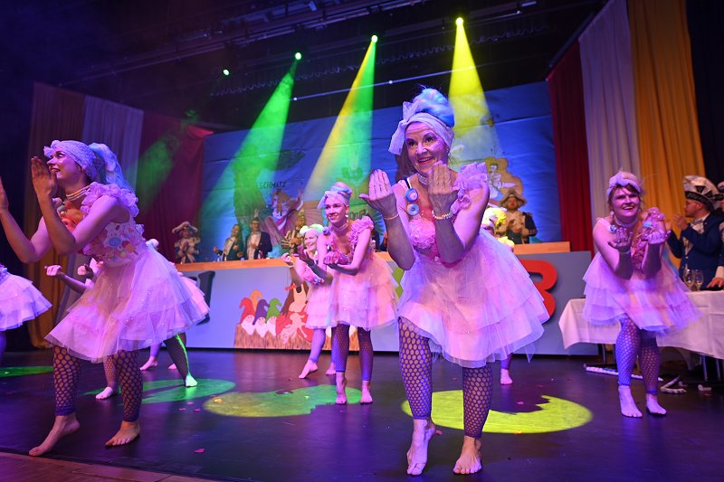 Das Programm bot einen Mix aus Gardetänzen, Büttenreden und Showeinlagen, der keine Wünsche offenließ. Für große Jubelstürme sorgte die „Traditionelle Funkengarde Erkelenz Blau-Weiß“. Als eine der ältesten Garden am Niederrhein begeisterten sie mit professioneller Choreografie, artistischen Sprüngen, und energiegeladenen Hebefiguren – ein absolutes Highlight des Abends und auch farblich passend zur blau-weißen Garde des CVWB. Aber auch viele andere Tanzgruppen sorgten für Jubelstürme: Das CVWB-Funkenmariechen Lejla eröffnete mit einem mitreißenden Solotanz. Die Juniorgarde, Prinzengarde und Blau-Weiße Garde des CVWB zeigten ihre neuesten Choreografien, „The Drohndancer“ aus Brakel entführten das Publikum mit einer humorvollen Show in die Tiefen des Meeres – inklusive Arielle und Poseidon. Der Überraschungs-Act war die Landjugend Istrup mit einem Müllwerker-Tanz. Die Showtanzgruppe „DIWO“ aus Delbrück-Ostenland mit ihrem Piratentanz und die Garde Sieburg Ahoi aus Bad Karlshafen setzten weitere tänzerische Akzente. Zum Abschluss brachte die „Traditionelle Funkengarde Erkelenz Blau-Weiß“ die Halle mit einem letzten beeindruckenden Auftritt zum Beben. Mit ihrem grandiosen Gardetanz bildeten sie den perfekten Übergang zur großen Party, bei der die Beverunger Narren bis in die frühen Morgenstunden weiterfeierten.
