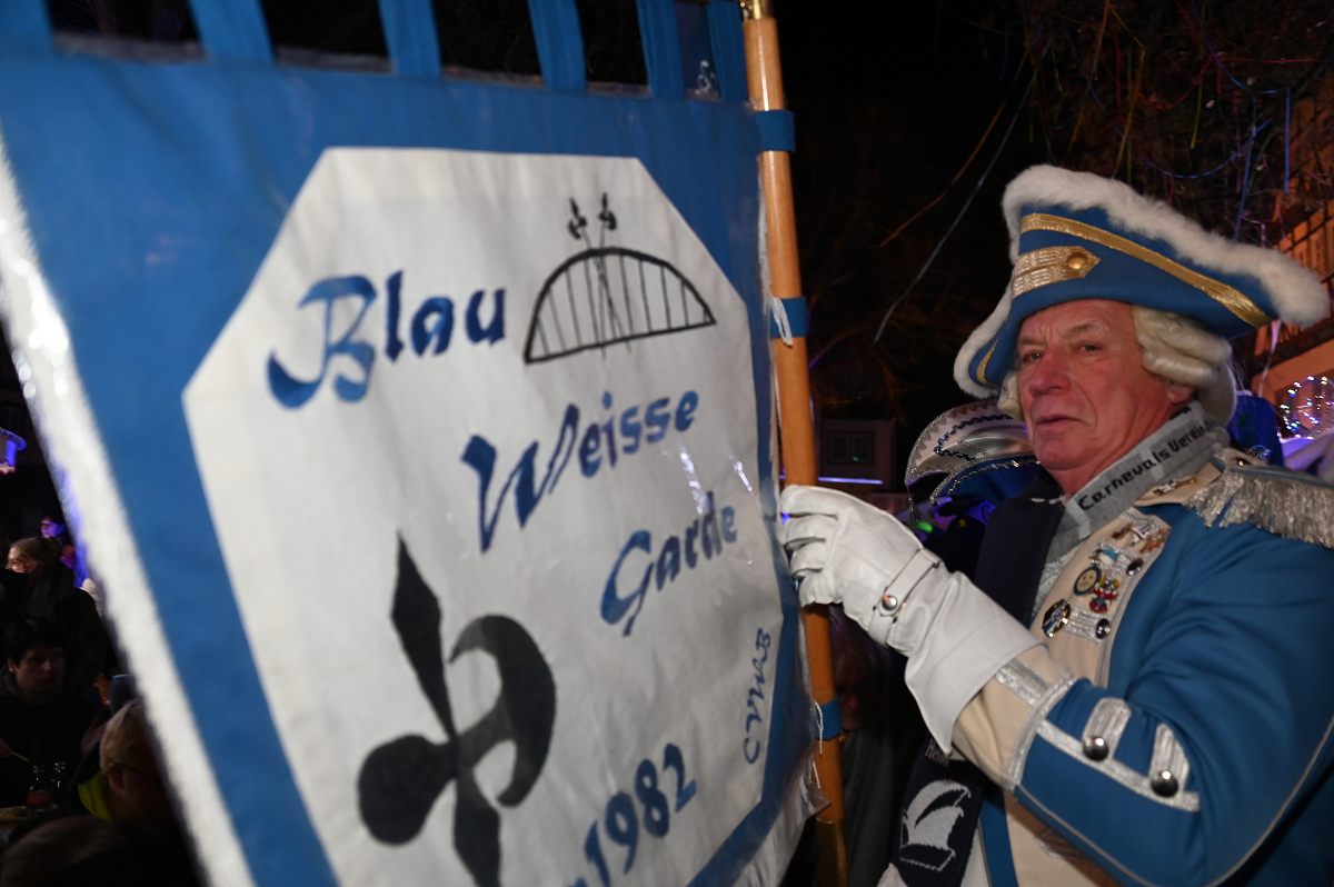 Lauenförde/Beverungen (TKu). Musik, Tanz und ausgelassene Carnevalsstimmung an der Ländergrenze ist der CVWB in die neue Carnevalssession gestartet: Der Carnevalsverein Weserbrücke e.V. (CVWB) feiert in diesem Jahr sein 50-jähriges Vereinsjubiläum, und wie immer mit einem dreifach donnernden „Weserbrücke Helau!“ Unter dem Motto „Der CVWB glitzert grenzenlos – im Dreiländereck ist richtig was los!“ erlebten zahlreiche Närrinnen und Narren einen Auftakt, der ausgelassener kaum sein könnte. Die Jecken aus Beverungen und Lauenförde ließen es sichzunächst nicht nehmen, traditionsgemäß den Schlüssel zum Roten Rathaus in Lauenförde zu erobern und das Rathaus zu erstürmen. Die Wächter des Schützenvereins Lauenförde von 1882 e.V. rückten mit einer schweren Kanone, einer kleinen Schützen-Armee und einem massiven Schlagbaum an, um das Gebäude gegen die närrische Übermacht zu verteidigen. Auch zwei Burgwächter aus Beverungen, motiviert durch den neu gewählten Bürgermeister Tino Wenkel, stellten sich den Karnevalisten entgegen. Doch trotz ihrer lautstarken Verteidigungsstrategie blieb der Sieg der Jecken unausweichlich: Die Damen der blau-weißen Garde eröffneten den Angriff mit Konfetti-Kanonen, gefolgt von der Alten Garde, die mit Regenschirmen ein ungewohntes, aber wirkungsvolles Bild bot. Schließlich ebneten die männlichen Karnevalisten den Weg, indem sie den Schlagbaum kurzerhand beiseite räumten und so die Verteidigungslinie durchbrachen. Unter großem Jubel zog die Narrenschar ins Rathaus ein. „Besser könnte unsere Jubiläumssession nicht beginnen!“, freute sich CVWB-Präsident Daniel Zarnitz über den erfolgreichen Auftakt.