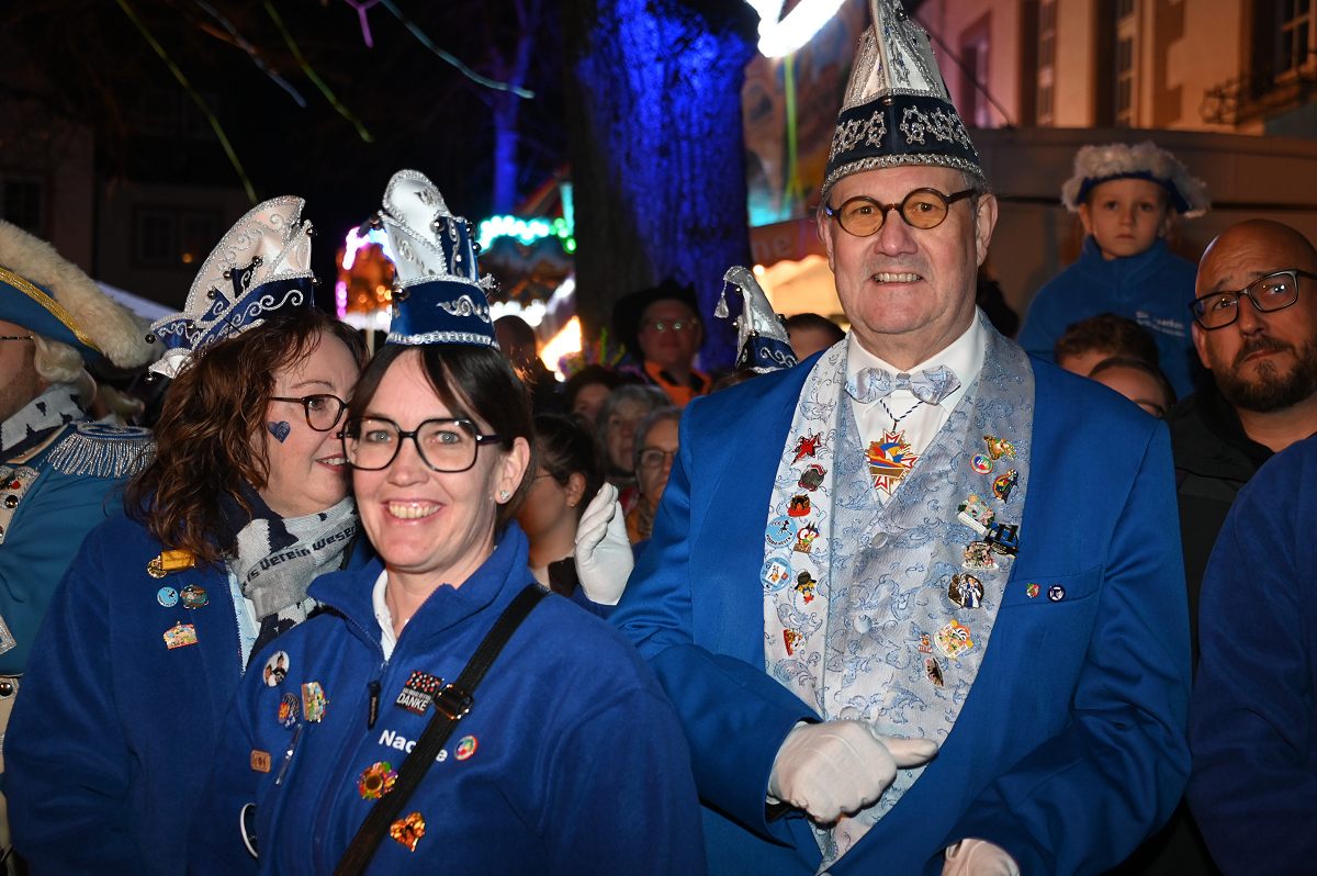 Doch mit dem Sturm auf das Rathaus war der närrische Feiertag noch lange nicht zu Ende. Bereits am Nachmittag startete in Beverungen das bunte Treiben auf dem Kellerplatz, begleitet von lauter Musik, Tanzeinlagen der Garden und einem fröhlichen Programm für Groß und Klein. Als Höhepunkt des Tages wurden um 17:11 Uhr die neuen Tollitäten proklamiert: Prinz Florian, „der balearisch Regierende“ (Kastens), und Prinzessin Carena, „die ewig Marschierende“ (Zarnitz), übernehmen das närrische Zepter der Jubiläumssession. An ihrer Seite führen „Till, der fröhlich Kreative“ (Marx) und Prinzessin „Johanna, die glitzernd Aktive“ (Kleinschmidt) die jungen Karnevalistinnen und Karnevalisten an. Mit großem Applaus wurden zugleich die scheidenden Tollitäten verabschiedet, die sich mit einer Ehrenordenverleihung aus ihren Ämtern verabschiedeten. Sogar das WDR-Fernsehen war vor Ort und berichtete aus der Karnevalshochburg im Dreiländereck.
