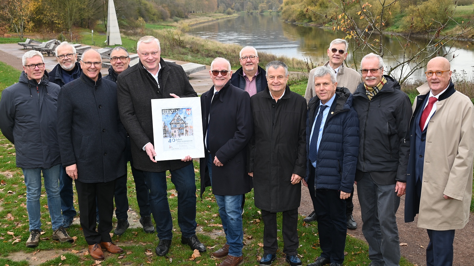 Höxter (TKu). Es gibt Momente, in denen Stadtgeschichte nicht im Rathaus geschrieben wird, sondern an Orten, an denen niemand damit rechnet. Vor 40 Jahren war es ein Kaminfeuer im Schloss Corvey, das den Funken für eine Initiative zündete, die bis heute nachwirkt. Einige Höxteraner saßen damals beisammen, unter ihnen Unternehmer, Handwerker und Freiberufler, unterschiedliche Typen, aber mit einem gemeinsamen Impuls: „Wenn wir sehen, dass etwas getan werden muss, dann tun wir es“, heißt es von dem „Freundeskreis Corveyer Dynamiker“, die auch nach 40 Jahren noch sehr aktiv sind. Ihr Jubiläumfest, das mit einer Andacht in der Weinbergkapelle in Höxter gestartet ist, wurde später auf der Weserscholle und in der Weinstube von Corvey, wo sich die Dynamiker einst gegründet haben, fortgesetzt. Vier Jahrzehnte später dankte Bürgermeister Daniel Hartmann den Dynamikern auf der Weserscholle für ihr Engagement, an jenem Ort, an dem die Dynamiker erst im vergangenen Jahr ihr jüngstes Projekt vollendet haben: die neue Toilettenanlage, im Volksmund längst zum „Schollenklo“ geworden. Eine schlichte, aber dringend benötigte Einrichtung, nachhaltig in Holzständerbauweise errichtet, mit Damen-, Herren- und barrierefreiem Bereich.