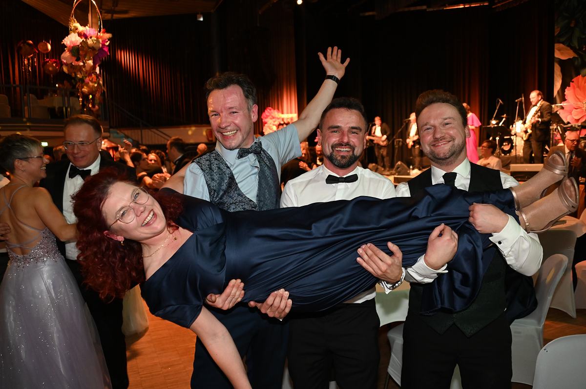 Beverungen (TKu). Ausverkaufte Stadthalle: Flexibilität gehörte in diesem Jahr ebenso zum Kulturball, wie die festliche Garderobe und die Tanzmusik der beliebten Amorados Showband. Beim 46. Kulturball in der Stadthalle Beverungen am vergangenen Samstagabend machte das Winterwetter eine kurzfristige Programmänderung erforderlich. Der geplante zweite Hauptact aus Bremen konnte wetterbedingt nicht anreisen, wie Schatzmeister Markus Hollenstein von der Kulturgemeinschaft Beverungen bei der Balleröffnung bekanntgeben musste. Für einen gelungenen Ersatz sorgten jedoch mehrere Line-Dancer und Tänzer, die als Besuchergruppe für spontane Darbietungen sorgten. Der Kulturball war erneut das Highlight der lokalen Kultursaison: Festliche Atmosphäre, elegante Gäste, stilvolle Dekoration und ein abwechslungsreiches Programm. Das engagierte Kulturballteam um Imke Groppe-Wille, Heike Hake, Beate Sagel, Alexandra Rüther, Eva Veigel und Anke Wellmann hatte monatelang geplant und präsentierte einen rundum gelungenen Abend. Insbesondere die Dekoration war im Wesentlichen bunter als die Jahre zuvor. Für ihre großartige Leistung und eine gelungene Dekoration dankte Markus Hollenstein von der Kulturgemeinschaft seiner Dekorations-Crew ganz herzlich auf der Bühne.