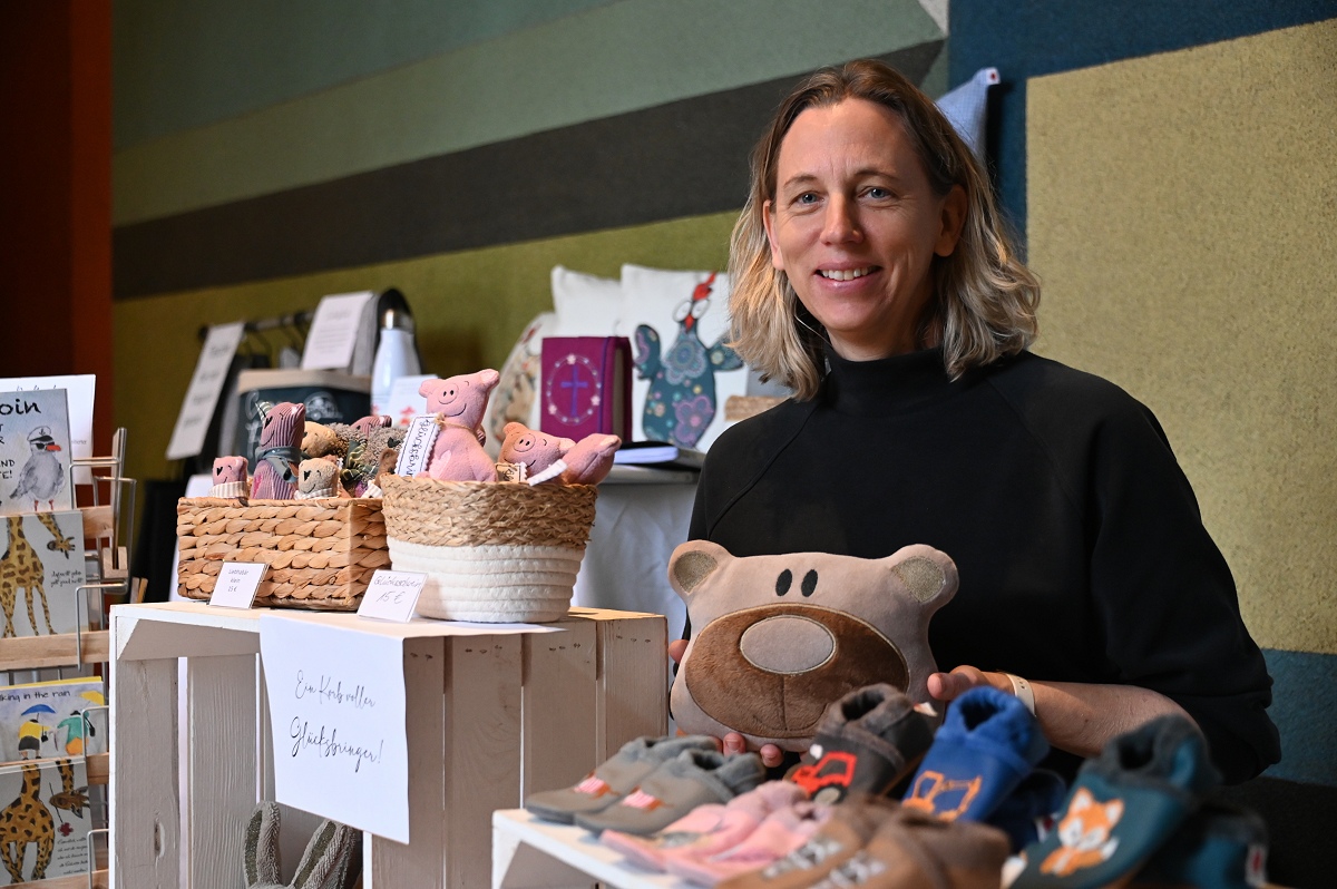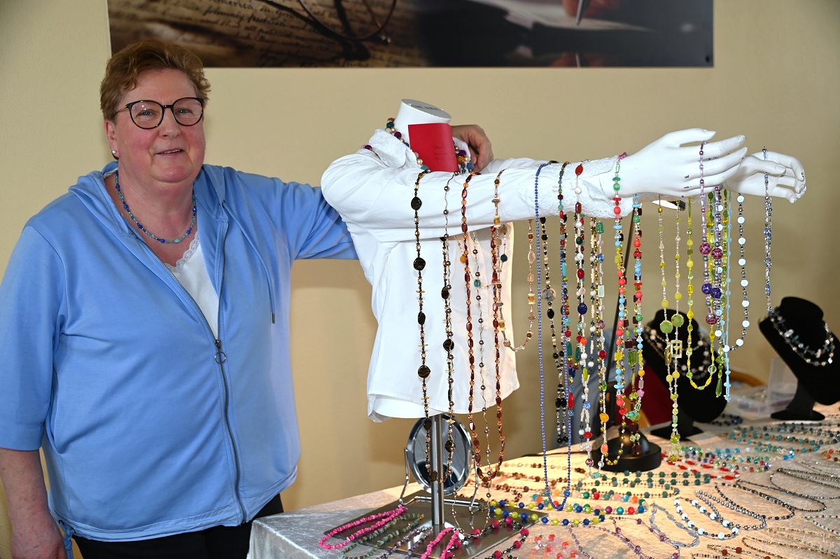 Zu den vertrauten Gesichtern des Marktes gehört Ortrud Wilde aus Boffzen. Sie nimmt seit mehr als 20 Jahren teil und arbeitet seit über drei Jahrzehnten kreativ mit Perlen. Den Zugang zu diesem Handwerk fand sie einst auf einer Messe in Hannover. Heute fertigt sie filigrane Ketten aus winzigen Perlen. „Echte Fummelarbeit und nur Einzelstücke“, sagte sie über ihre Arbeiten, die viel Präzision verlangen. Eine ungewöhnliche Premiere gab es mit Christina Bosser aus Scherfede. Sie war zum ersten Mal dabei und nutzte einen kleinen Stand, um auf ihr neu gegründetes Kleinunternehmen aufmerksam zu machen. Ihr Thema: Katzenpsychologie. Dabei gehe es um die Analyse von Verhaltensproblemen, die bei Tieren durch unterschiedliche Umstände entstehen können, erklärte sie. Zwischen Deko, Handarbeit und Geschenkideen setzte sie damit einen eher ungewöhnlichen, aber durchaus passenden Akzent.