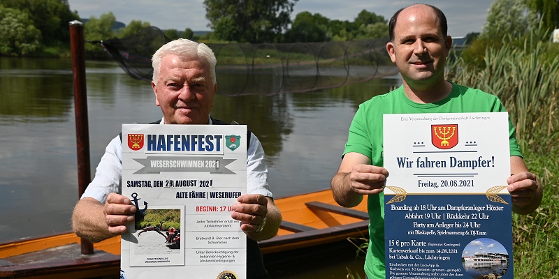 Die Karten seien begrenzt und die Nachfrage hoch, so Gröne. Für die „Dampferfahrt“ hat die Dorfgemeinschaft ein ganzes Schiff gechartert. Für die musikalische Unterhaltung an Bord wird die Blaskapelle und der Spielmannszug Lüchtringen sowie ein Discjockey sorgen. Die Fahrtroute verläuft von Höxter aus wieder nach Höxter zurück. Ab 18 Uhr werden die Gäste an Bord empfangen. Von 19 Uhr bis 22 Uhr soll die Fahrt andauern und bis Mitternacht kann auf dem Schiff am Anleger noch gefeiert werden. Das Einchecken sei mit Luca-App erwünscht. Nach gültiger Corona-Schutzverordnung ist ein Nachweis erforderlich, das man entweder getestet, genesen oder geimpft ist. Für das 21. Weserschwimmen am alten Fährhaus in Verbindung mit dem Hafenfest vor dem Vereinsheim des Fischereivereins erwartet der ausrichtende Fischereiverein am 28. August wieder zwischen 40 und 50 Teilnehmende, welche die Weser durchschwimmen wollen. Wer über das Seepferdchen-Abzeichen verfüge, der dürfe gerne daran teilnehmen, egal woher er kommt, meint der Vorsitzende des Fischereivereins, Friedel Höke. Eine Anmeldung dazu sei nicht erforderlich. Der älteste Teilnehmer mit 87 Jahren habe bereits seine Teilnahme zugesagt, ebenso die wohl vermutlich jüngste Schwimmerin mit zehn Jahren. Beginn ist 17 Uhr am Fährhaus in Lüchtringen. Beim Hafenfest wird die Blaskapelle und der Spielmannszug Lüchtringen für die musikalische Unterhaltung sorgen.