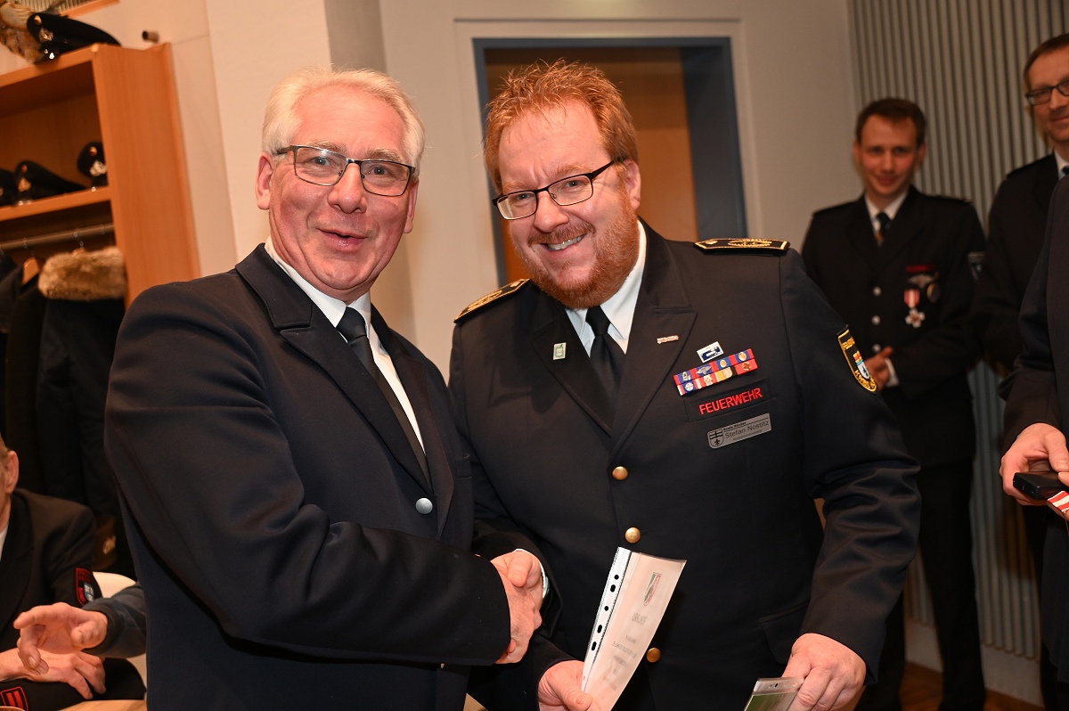 Nach dem Jahresrückblick dankte Ewen allen Einheitsführern für ihre geleistete Arbeit. Bürgermeister Tino Wenkel schloss sich dem Dank an und sprach von einem „fordernden Jahr in herausfordernden Zeiten“. Es sei geprägt gewesen von einer intensiven Zusammenarbeit zwischen Feuerwehrführung und Politik im Rahmen des fortlaufenden Brandschutzbedarfsplans. Die größten Investitionen flössen in die Löschwasserversorgung, die Modernisierung beziehungsweise den Neubau von Gerätehäusern sowie in den Fuhrpark der Feuerwehr Beverungen. Die Feuerwehr genieße höchste Priorität und ein hohes Ansehen. „Sicherheit ist nicht verhandelbar“, betonte Wenkel.