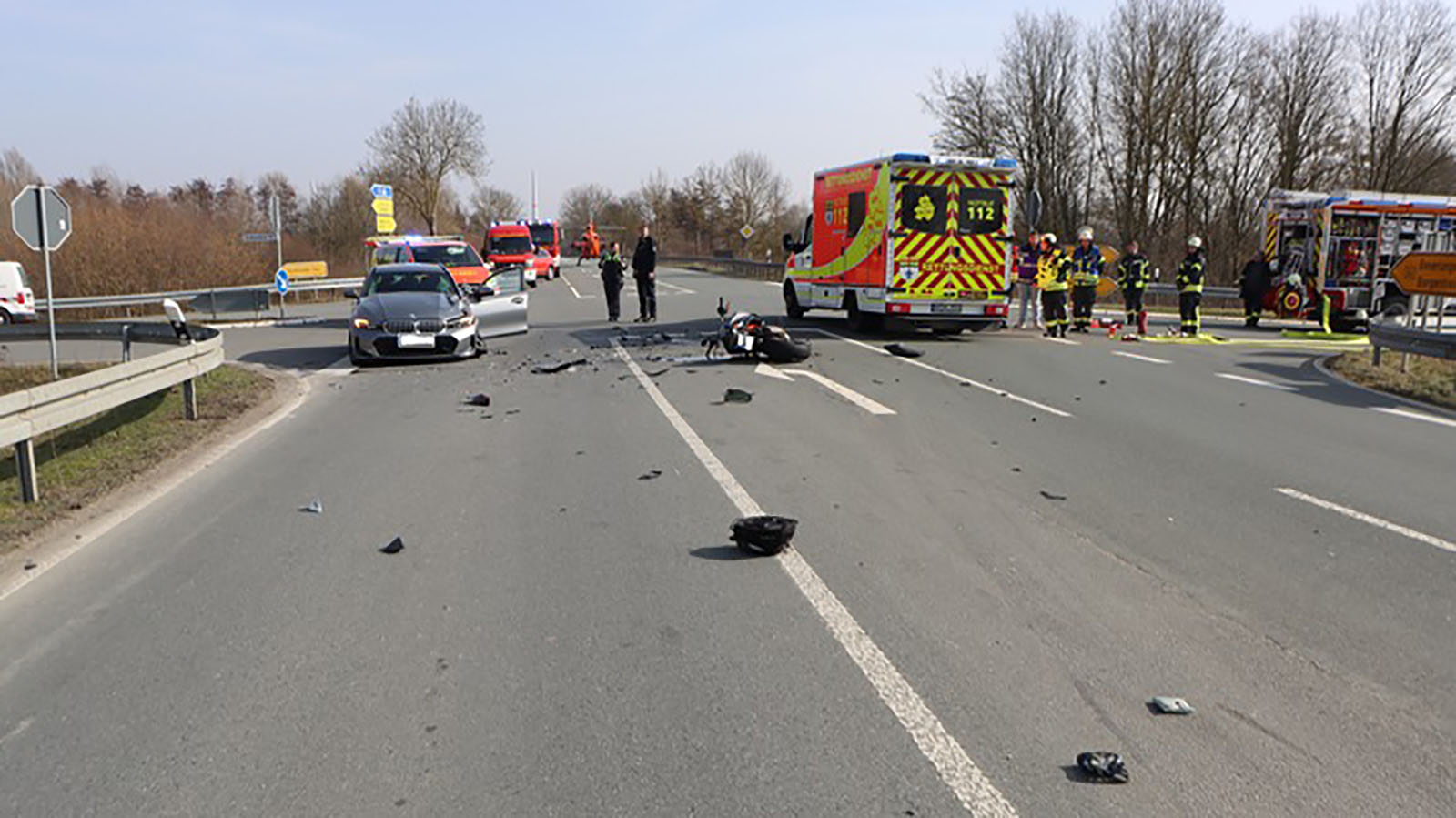 Zudem wurde ein Rettungshubschrauber angefordert, um den schwer verletzten Motorradfahrer möglichst schnell in eine Klinik zu bringen. Die Bundesstraße sollte voraussichtlich noch bis in den Nachmittag gesperrt bleiben, während Rettungsarbeiten, Unfallaufnahme und Bergung der Fahrzeuge andauerten.