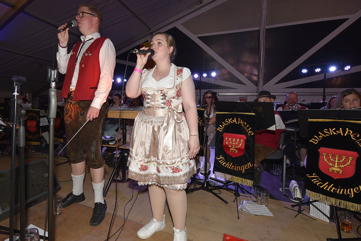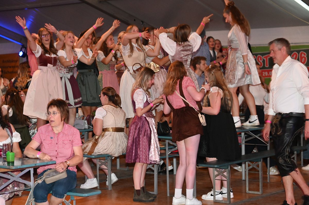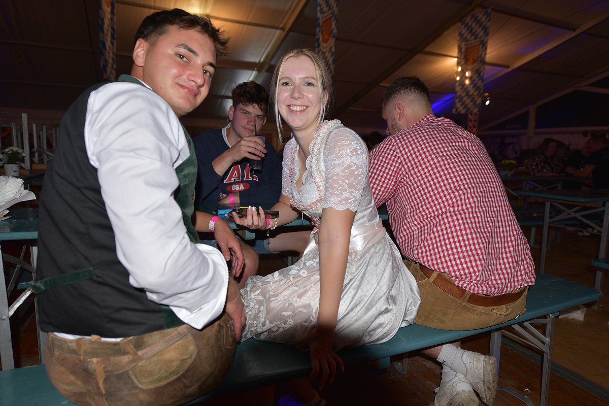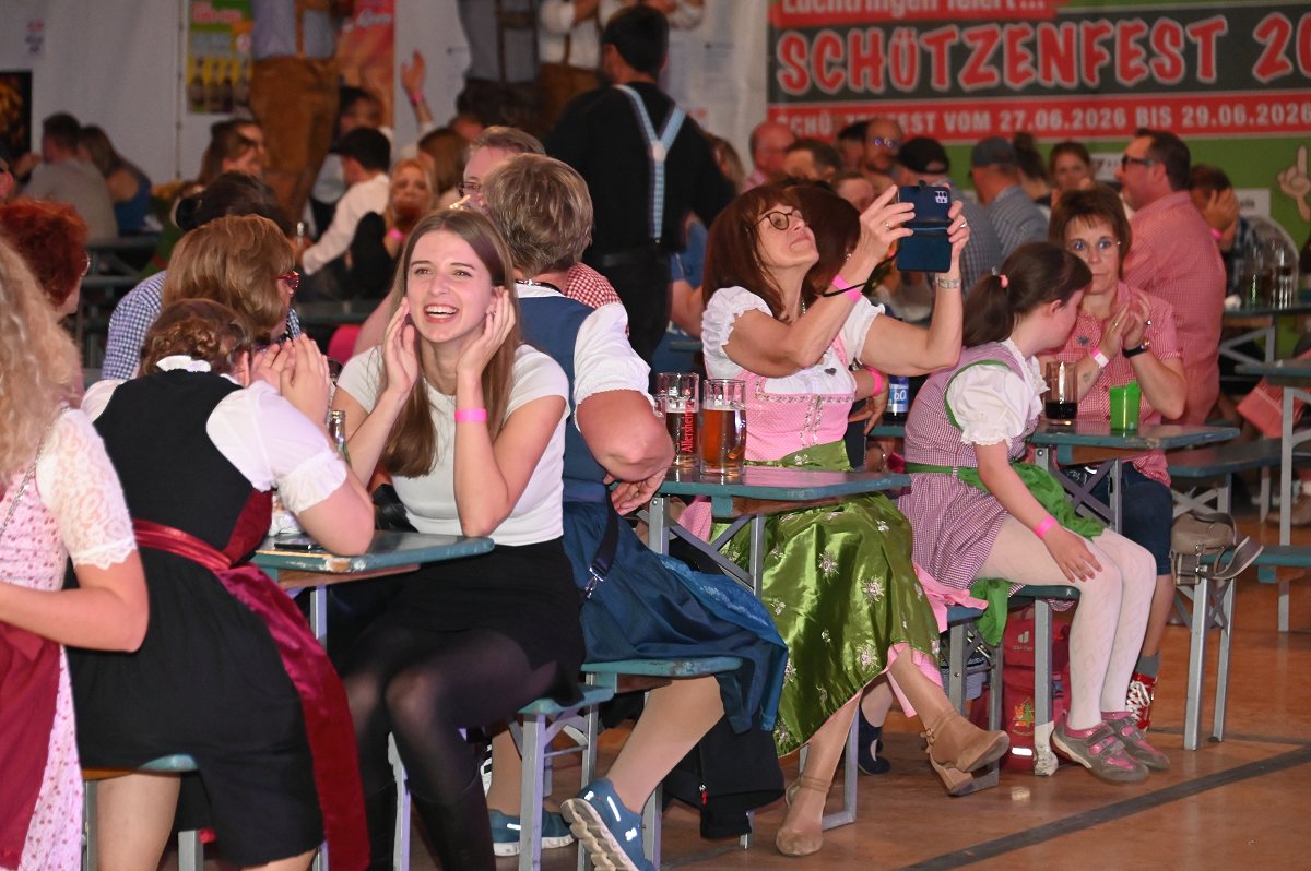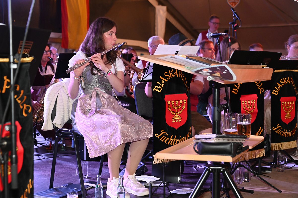 Lüchtringen (TKu). So war das Oktoberfest Lüchtringen: Zünftig, laut und voller Lebensfreude feierte Lüchtringen am vergangenen Wochenende sein Oktoberfest, die „Lüchtringer Wies’n“ und verwandelte das große Festzelt auf dem Festplatz im Lambertweg in ein Meer aus Dirndl und Lederhosen. Mehr als 1500 Besucherinnen und Besucher ließen sich die größte Oktoberfest-Party der Region nicht entgehen und sie wurden nicht enttäuscht. Mit zwei kräftigen Hammerschlägen zapfte Marcus Busse von der Brauerei Allersheim am Samstagabend das erste Fass an und eröffnete gemeinsam mit Festwirt Stefan Friedrich, dem Vorsitzenden der Blaskapelle Lüchtringen, Christoph Missing, sowie Dirigent Martin Heinemeyer das Fest. Damit war der Startschuss für zwei Tage voller Musik und Feierlaune gefallen. Den Auftakt gestaltete die gastgebende Blaskapelle Lüchtringen, ehe die „FrankenKracher“ mit ihrem Mix aus bayerischer Blasmusik und modernen Partyhits das Zelt zum Beben brachten.