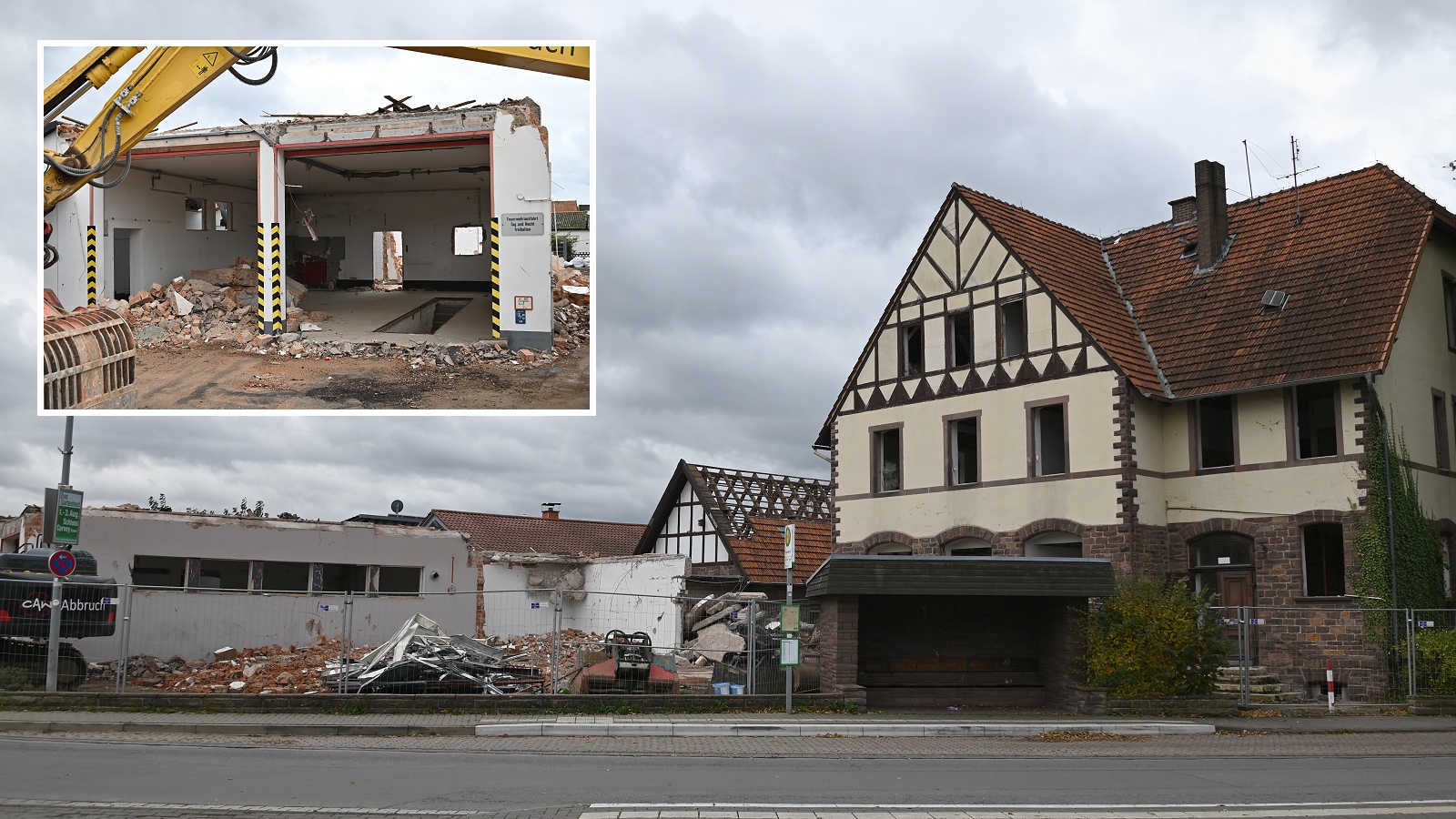 Nachdem mit der Entkernung des alten Feuerwehrgerätehauses und der ehemaligen Schule bereits vor rund zwei Wochen begonnen wurde, ist Mitte dieser Woche der Abrissbagger angerückt. In nur zwei Tagen fiel als erstes der Dachstuhl des 60 Jahre alten Feuerwehrgerätehauses. Das Gebäude aus dem Jahr 1964 wurde mehrfach modernisiert, zuletzt 2005, als es mit einem kleinen Anbau für die Spinde versehen wurde. Auch das benachbarte ehemalige Schulgebäude wird in den kommenden Tagen dem Erdboden gleich gemacht. Das Gebäude wurde ursprünglich 1909 für zwei Schulklassen errichtet und 1941 noch einmal vom Schul- zum Wohngebäude umgebaut, als das Schulzentrum im Lambertweg fertiggestellt werden konnte. In den vergangenen Jahrzehnten diente es außerdem unterschiedlichen Zwecken, zuletzt als Unterkunft für Geflüchtete.