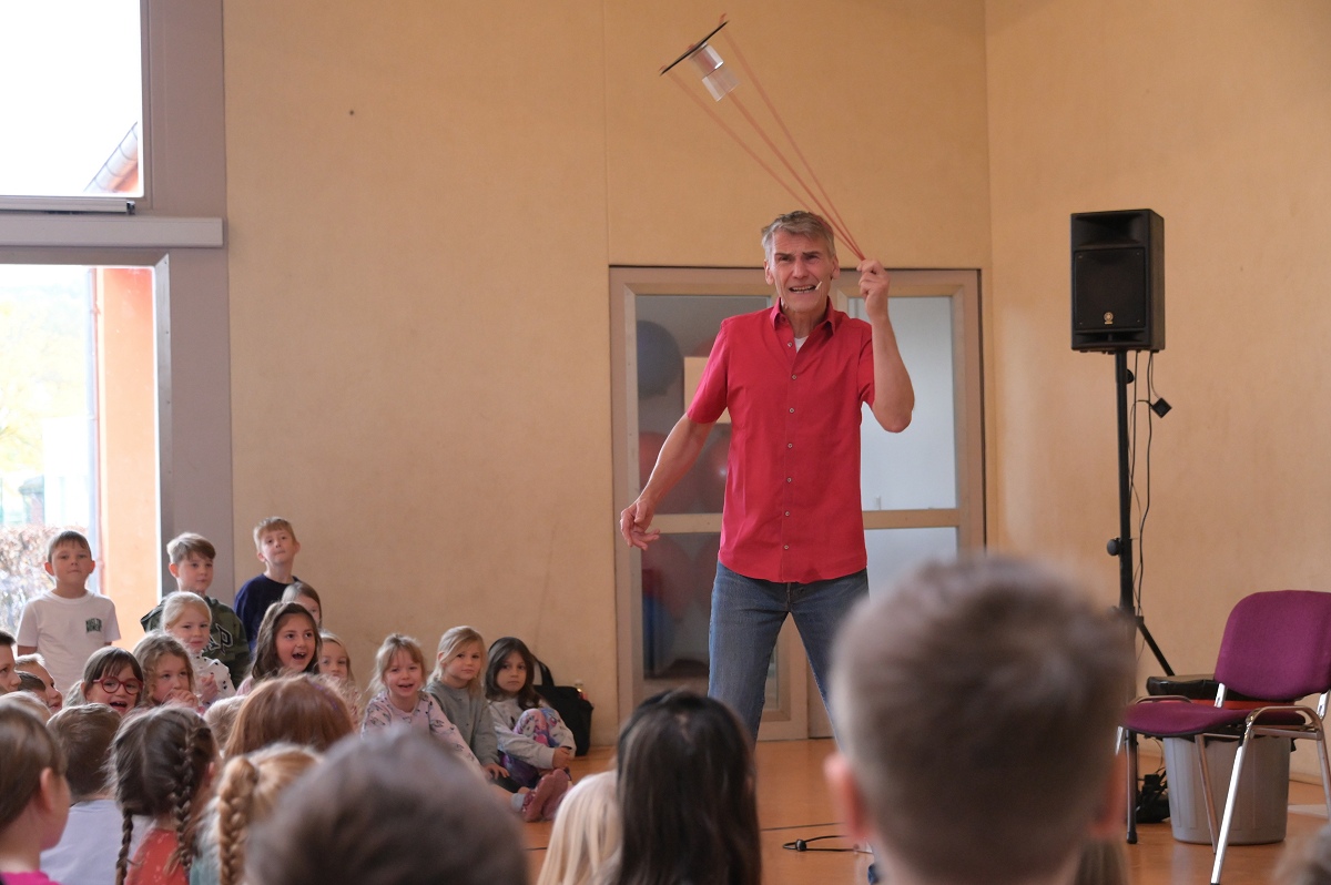 Begleitet wird die Show zudem von passendem Lehrmaterial, das die Themen im Sachunterricht aufgreift und den Forschergeist der Kinder weiter anregen soll. Die Begeisterung in der Turnhalle war von Anfang an riesig. Am Ende belohnten die jungen Zuschauer Dr. Ott mit frenetischem Applaus und lautstarken „Zugabe!“-Rufen. Die Wissensshow hat die Kinder, aber auch die Lehrerinnen und Lehrer mal so richtig in ihren Bann gezogen. Förderverein, Schulleitung und Lehrkräfte zeigten sich hochzufrieden: „Ein physikalisches Highlight, das noch lange in Erinnerung bleiben dürfte und vielleicht sogar den einen oder anderen kleinen Forscher hervorbringt“, hieß es da vom Förderverein der Lüchtringer Grundschule.