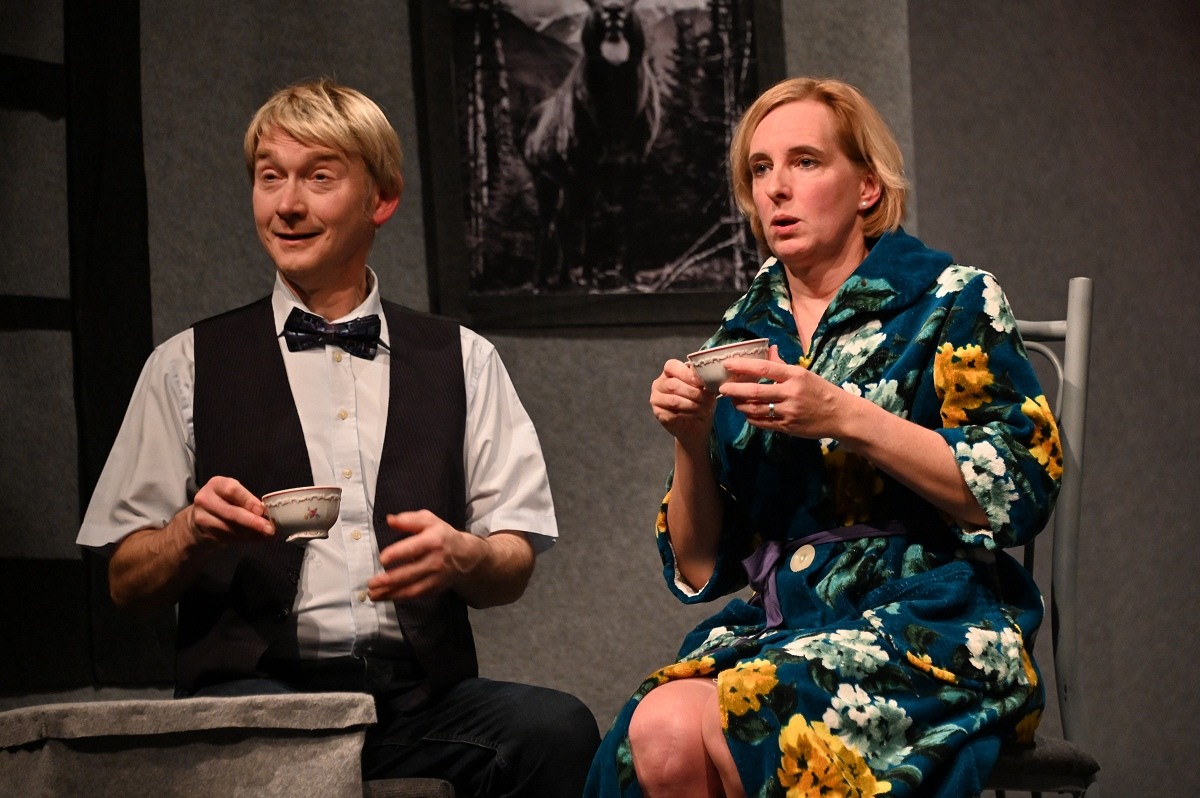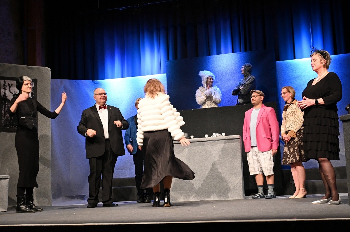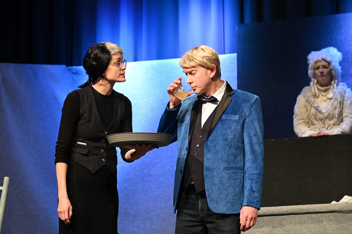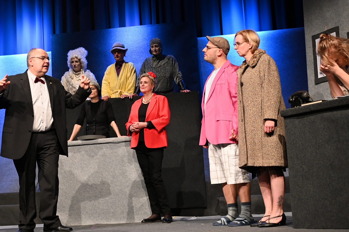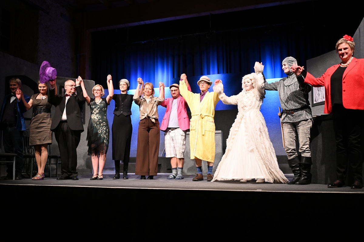 Ottbergen (TKu). Das Theater-Ensemble ThimKu, Theater im Kuhstall, hat am vergangenen Wochenende mit seiner neuen Komödie „Burghotel Schlosshof – Kredit wird nicht gegeben“ von Evelyn Köster erfolgreich abgeliefert. Am 8. und 9. November feierte das Stück im voll besetzten Kuhstall in Ottbergen seine Premiere mit zwei Aufführungen. Das Publikum zeigte sich begeistert von der turbulenten Handlung und dem, mit viel Freude agierenden, Ensemble, das an beiden Abenden mit viel Applaus belohnt wurde. Im Mittelpunkt der Aufführung steht das Burghotel Schlosshof, ein in die Jahre gekommener Hotelkomplex, der kurz vor dem Aus steht. Hoteldirektor Fröhlitsch, seine Mitarbeiterinnen Pitrella Partinowa und Hannelore Prügelhausen sowie zwei liebreizende Geister setzen große Hoffnungen in eine illustre Gästeschar. Doch unter ihnen soll sich auch ein Spion der Finanz- und Bilanz AG befinden. Mit einer Mischung aus Humor, Spannung und skurrilen Eigenheiten nimmt das Ensemble das Publikum mit in eine Welt voller Rätsel, Notizbücher und schräger Überraschungen. Besonders war dieser Premierenstart auch für Maren Schlebusch, Gründungsmitglied des ThimKu e. V., die mit dieser Inszenierung ihr Regiedebüt gab.
