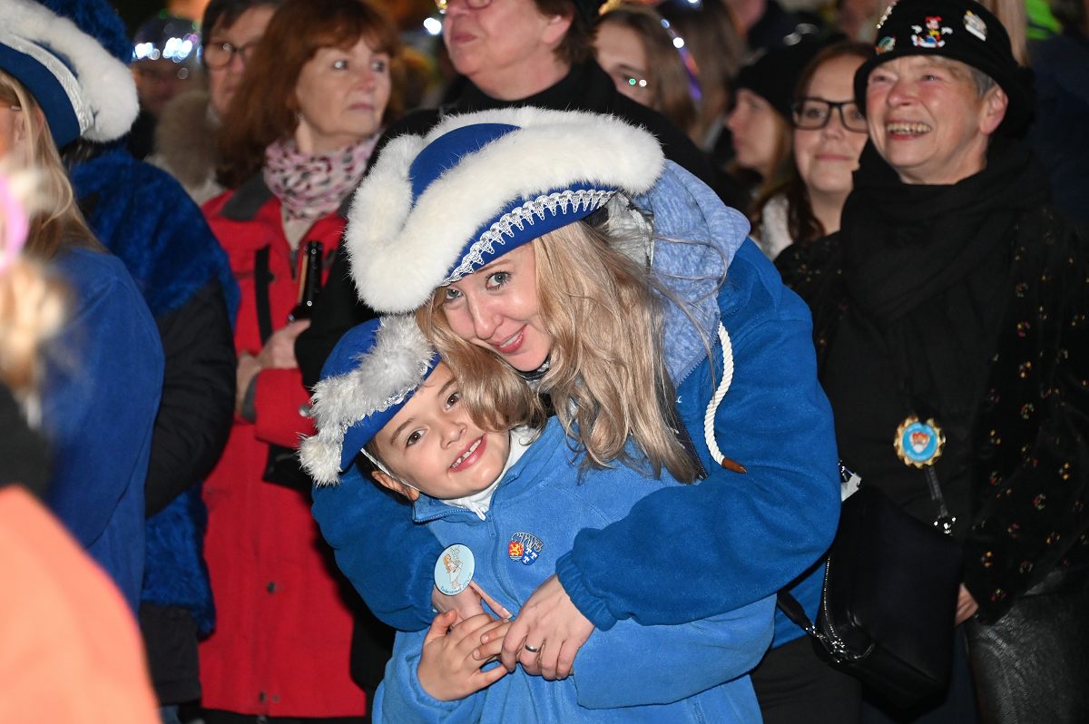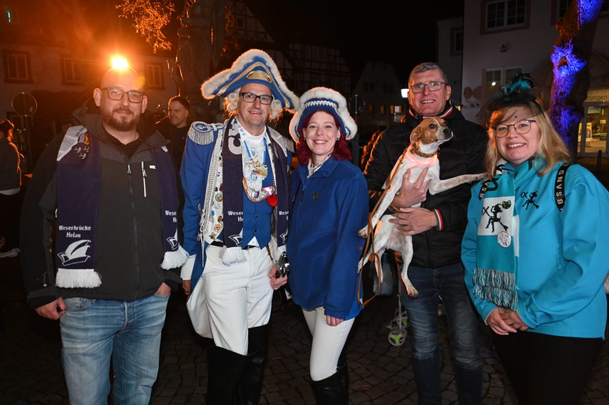 Lauenförde/Beverungen (TKu). Musik, Tanz und ausgelassene Carnevalsstimmung an der Ländergrenze ist der CVWB in die neue Carnevalssession gestartet: Der Carnevalsverein Weserbrücke e.V. (CVWB) feiert in diesem Jahr sein 50-jähriges Vereinsjubiläum, und wie immer mit einem dreifach donnernden „Weserbrücke Helau!“ Unter dem Motto „Der CVWB glitzert grenzenlos – im Dreiländereck ist richtig was los!“ erlebten zahlreiche Närrinnen und Narren einen Auftakt, der ausgelassener kaum sein könnte. Die Jecken aus Beverungen und Lauenförde ließen es sichzunächst nicht nehmen, traditionsgemäß den Schlüssel zum Roten Rathaus in Lauenförde zu erobern und das Rathaus zu erstürmen. Die Wächter des Schützenvereins Lauenförde von 1882 e.V. rückten mit einer schweren Kanone, einer kleinen Schützen-Armee und einem massiven Schlagbaum an, um das Gebäude gegen die närrische Übermacht zu verteidigen. Auch zwei Burgwächter aus Beverungen, motiviert durch den neu gewählten Bürgermeister Tino Wenkel, stellten sich den Karnevalisten entgegen. Doch trotz ihrer lautstarken Verteidigungsstrategie blieb der Sieg der Jecken unausweichlich: Die Damen der blau-weißen Garde eröffneten den Angriff mit Konfetti-Kanonen, gefolgt von der Alten Garde, die mit Regenschirmen ein ungewohntes, aber wirkungsvolles Bild bot. Schließlich ebneten die männlichen Karnevalisten den Weg, indem sie den Schlagbaum kurzerhand beiseite räumten und so die Verteidigungslinie durchbrachen. Unter großem Jubel zog die Narrenschar ins Rathaus ein. „Besser könnte unsere Jubiläumssession nicht beginnen!“, freute sich CVWB-Präsident Daniel Zarnitz über den erfolgreichen Auftakt.