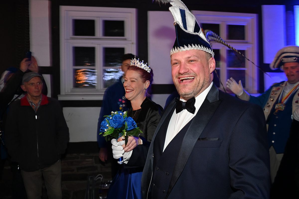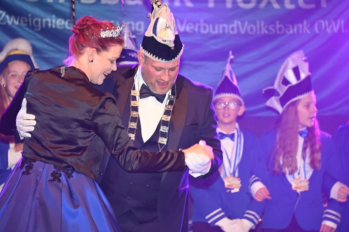 Doch mit dem Sturm auf das Rathaus war der närrische Feiertag noch lange nicht zu Ende. Bereits am Nachmittag startete in Beverungen das bunte Treiben auf dem Kellerplatz, begleitet von lauter Musik, Tanzeinlagen der Garden und einem fröhlichen Programm für Groß und Klein. Als Höhepunkt des Tages wurden um 17:11 Uhr die neuen Tollitäten proklamiert: Prinz Florian, „der balearisch Regierende“ (Kastens), und Prinzessin Carena, „die ewig Marschierende“ (Zarnitz), übernehmen das närrische Zepter der Jubiläumssession. An ihrer Seite führen „Till, der fröhlich Kreative“ (Marx) und Prinzessin „Johanna, die glitzernd Aktive“ (Kleinschmidt) die jungen Karnevalistinnen und Karnevalisten an. Mit großem Applaus wurden zugleich die scheidenden Tollitäten verabschiedet, die sich mit einer Ehrenordenverleihung aus ihren Ämtern verabschiedeten. Sogar das WDR-Fernsehen war vor Ort und berichtete aus der Karnevalshochburg im Dreiländereck.