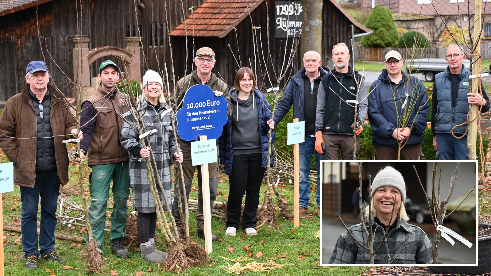 Viele Lütmarser hatten bereits vor der Abholung die Pflanzlöcher vorbereitet, so auch Susi Beineke, die vier Bäume in Empfang nahm. Nach dem Abriss zweier Gewächshäuser und den Tornadoschäden hat sie nun viel Platz für Neues. „Meine Oma, eine leidenschaftliche Gartenfreundin wie wir auch, freut sich sehr über die neuen Bäume“, erzählt Beineke. Sie pflanzt zweimal Apfel, einmal Kirsche und einmal Birne, ein Schritt, um das wiederherzustellen, was der Tornado zerstört hat. Der Heimatverein betont den nachhaltigen Gedanken hinter der Aktion: „Wir möchten nicht nur das Ortsbild verschönern, sondern auch etwas für Natur, Artenvielfalt und zukünftige Generationen schaffen“, so Sagel. Eine Baumpflanzaktion dieser Größenordnung habe es im Kreis Höxter bislang nicht gegeben. „Dass an nur einem Tag in einem einzigen Dorf fast 200 Obstbäume auf Privatflächen gepflanzt werden, ist außergewöhnlich“, heßt es von Martin Sagel. Ein Restbetrag aus der Spendensumme steht noch zur Verfügung. Damit soll im kommenden Jahr in Absprache mit der Stadt Höxter eine neue Streuobstwiese entstehen zwischen Lütmarsen und Ovenhausen.