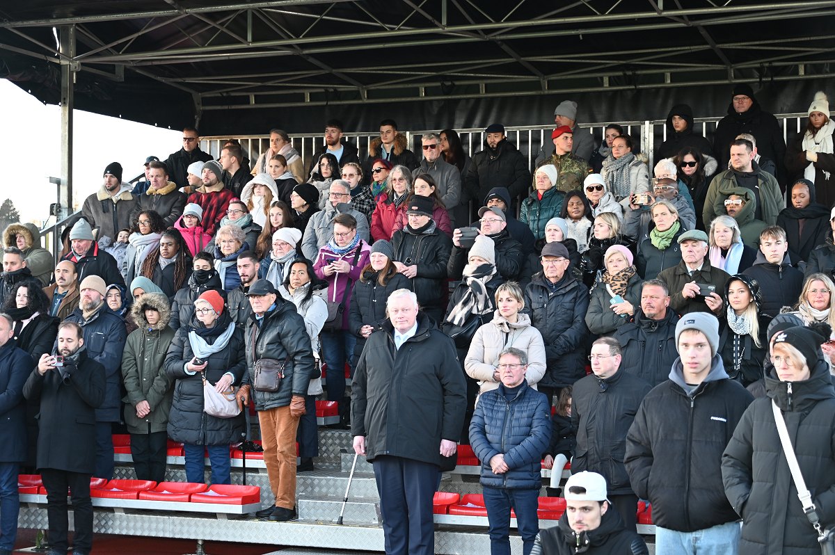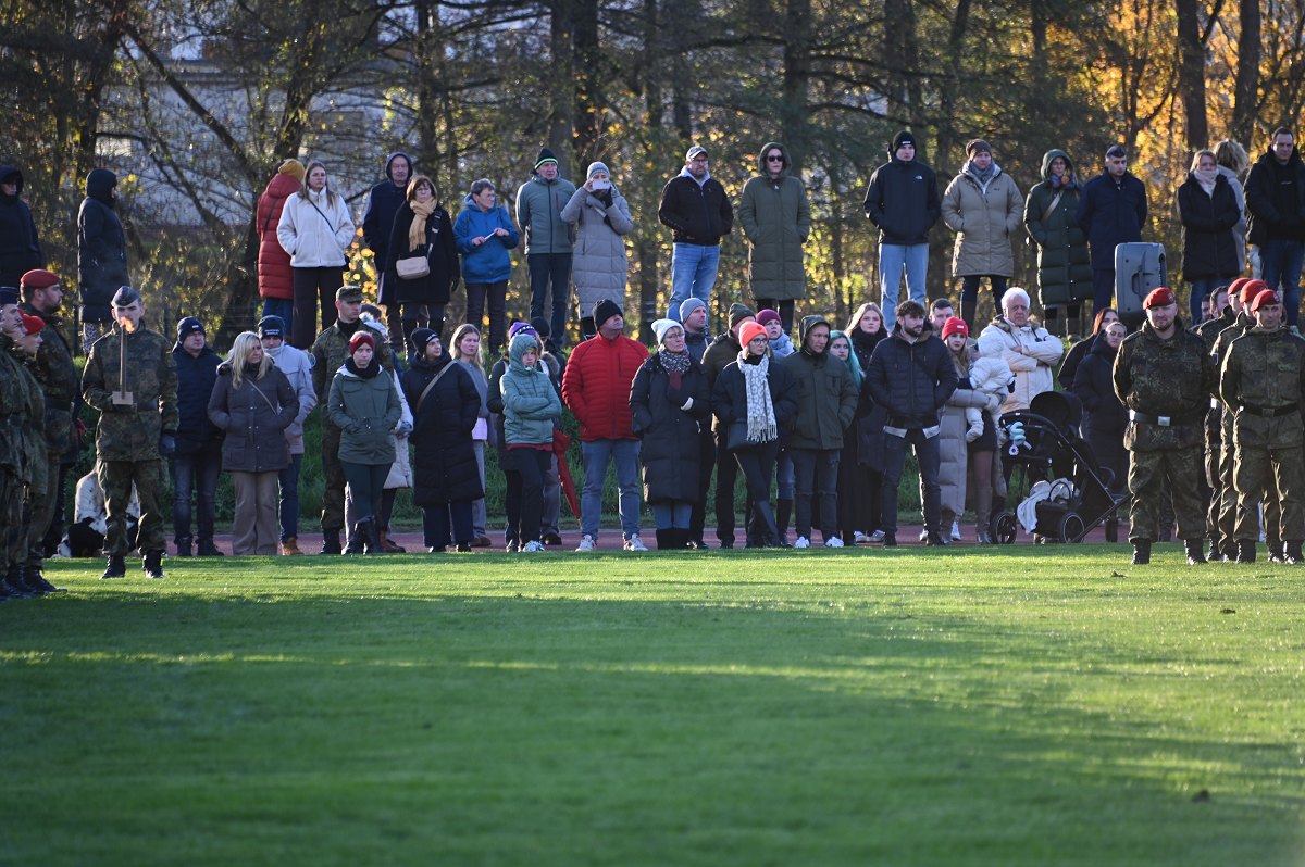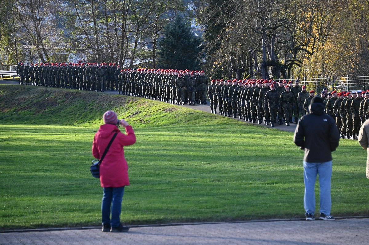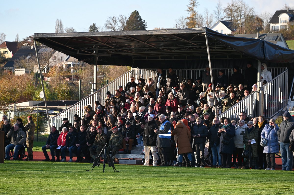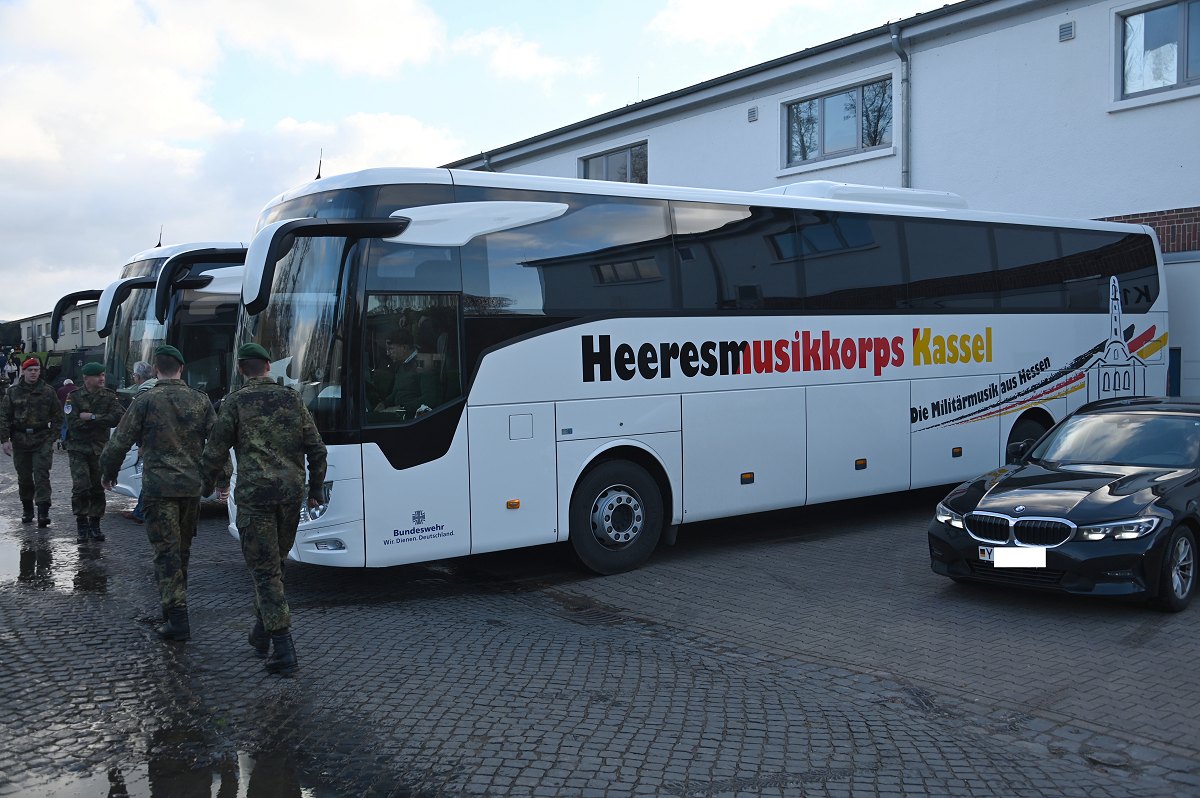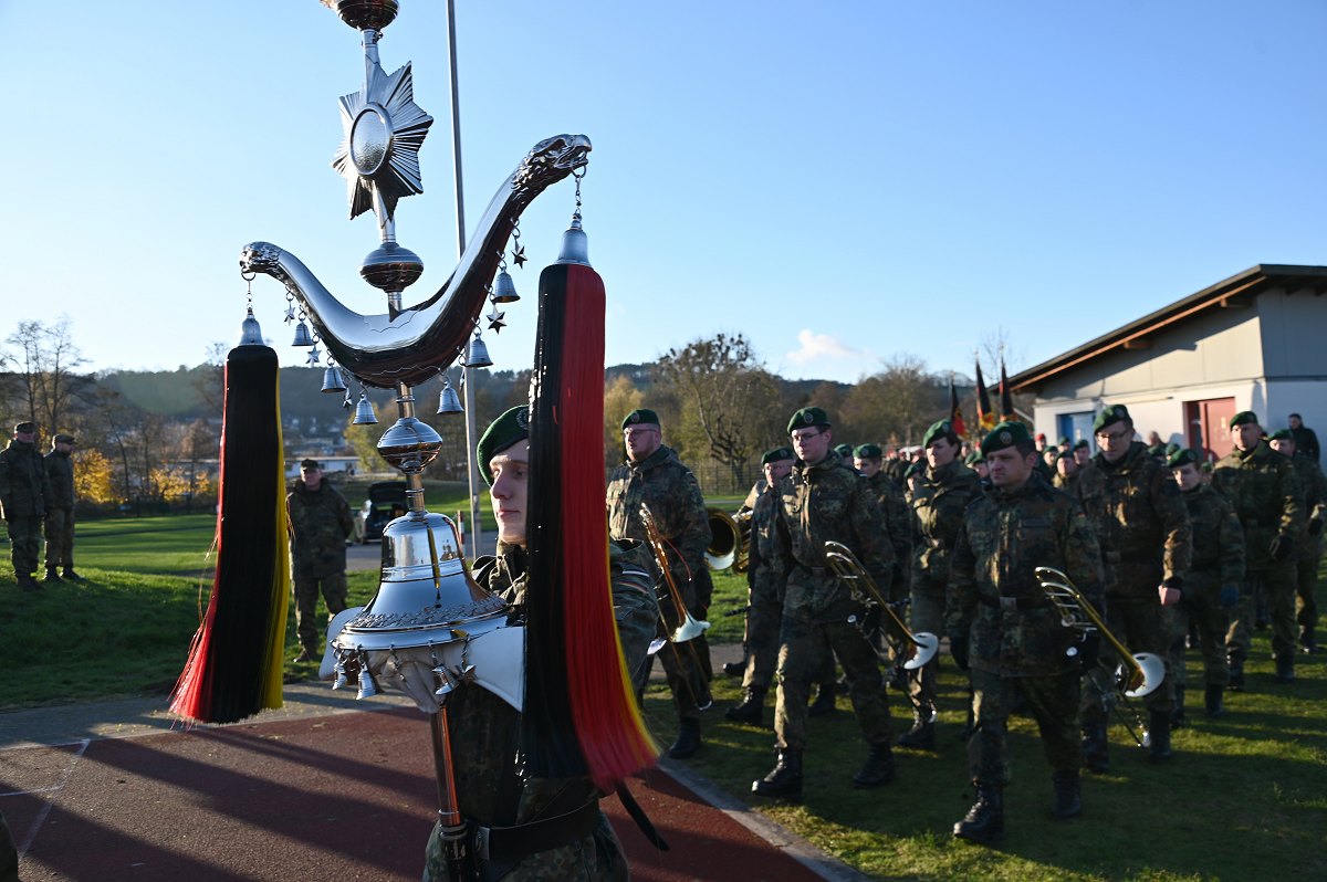 Der zentrale Moment des Appells folgte, als die Fahnenabordnungen und die Rekrutenabordnungen antraten, die Truppenfahnen gesenkt wurden und Oberst Lutz die Eidesformel sprach. Während das Heeresmusikkorps Kassel traditionelle Stücke wie den Preußischen Präsentiermarsch und das Altniederländische Dankgebet intonierte, legten die Rekruten ihr Gelöbnis ab: der Bundesrepublik Deutschland treu zu dienen und das Recht und die Freiheit des deutschen Volkes tapfer zu verteidigen. Es war ein Augenblick spürbarer Ernsthaftigkeit, der sich auch auf die viele Angehörigen übertrug, die diesen Schritt ihrer Söhne, Töchter und Partnerinnen sichtlich bewegt verfolgten. Mit der Nationalhymne erreichte der Appell seinen feierlichen Höhepunkt. Nach der offiziellen Feststellung des Gelöbnisses durch den Kommandeur folgten Gratulationen, persönliche Worte und Erinnerungsfotos bzw. -videos. Mit dem Ausmarsch der Ehrenformation endete der offizielle Teil der Veranstaltung, doch für die Rekrutinnen und Rekruten beginnt nun der nächste Abschnitt ihrer militärischen Ausbildung.