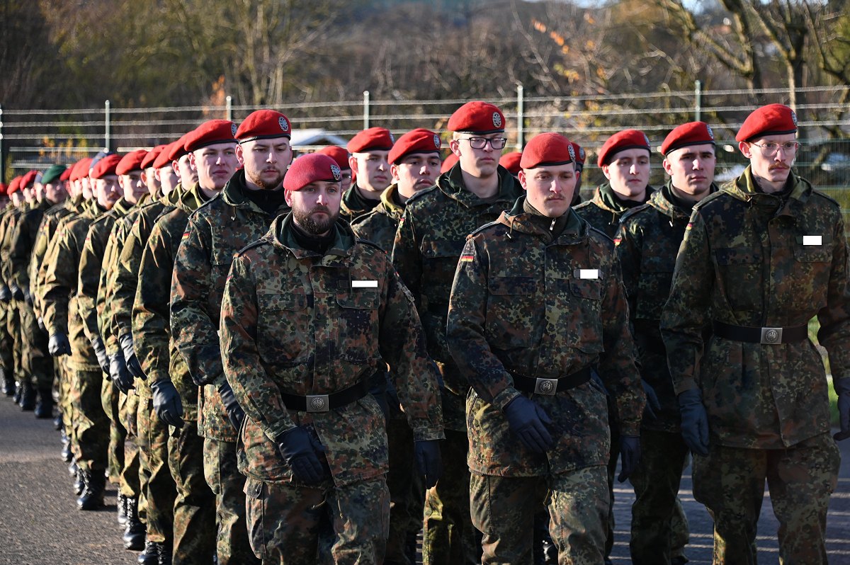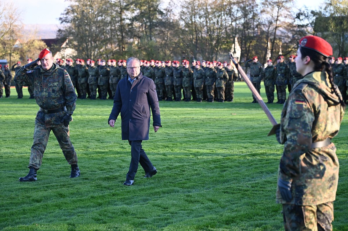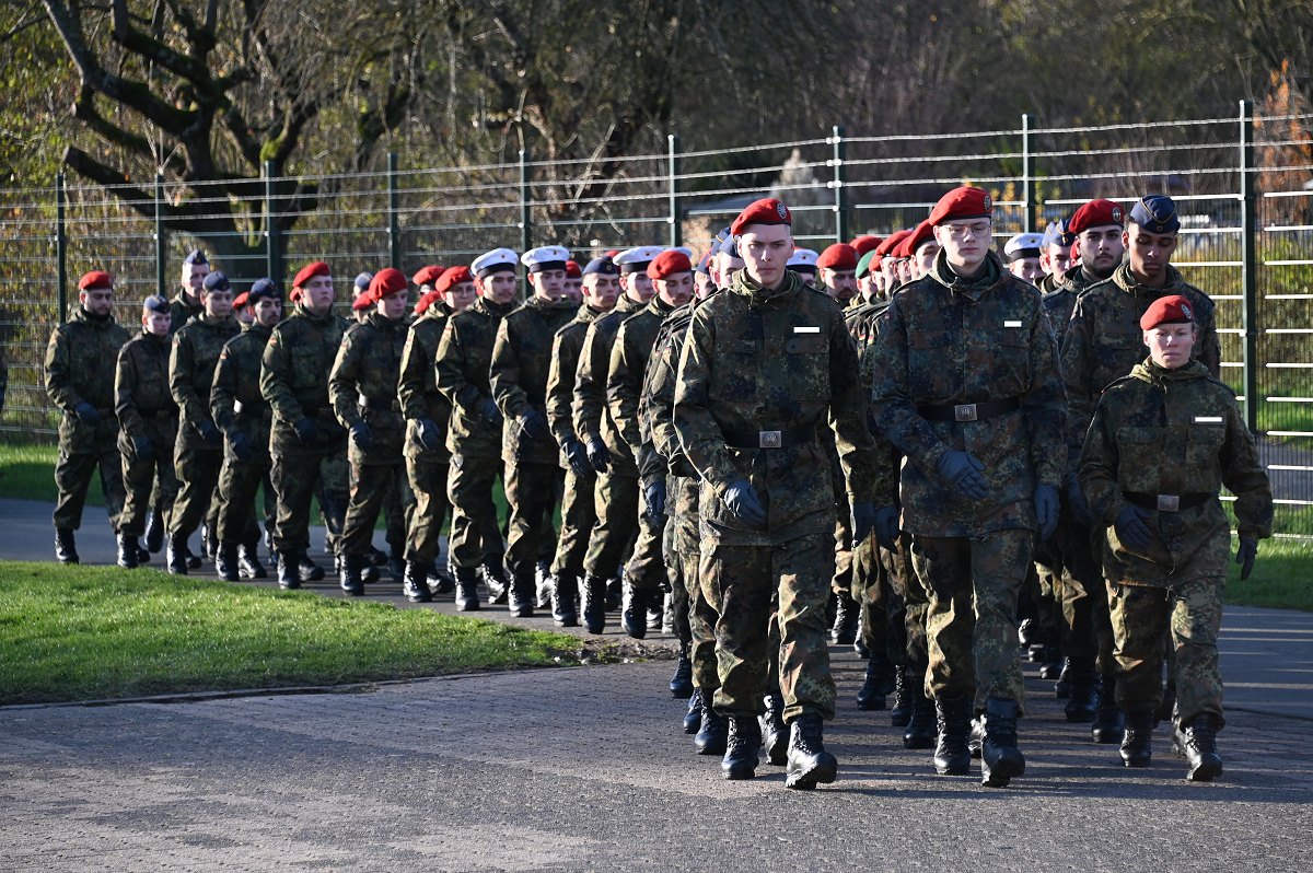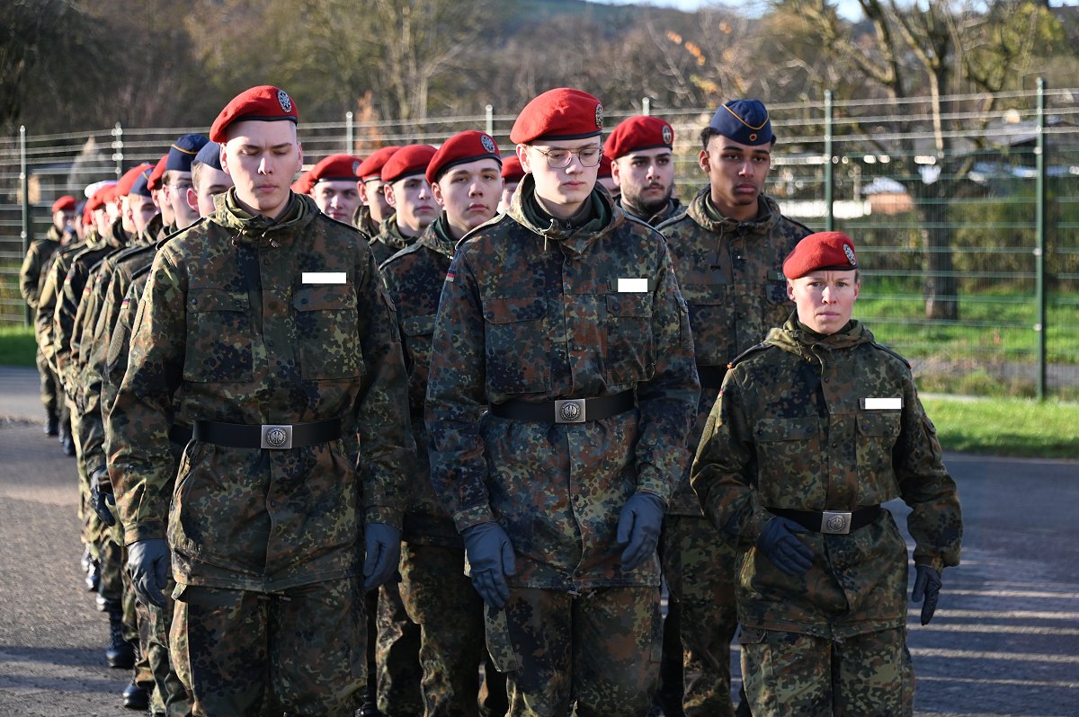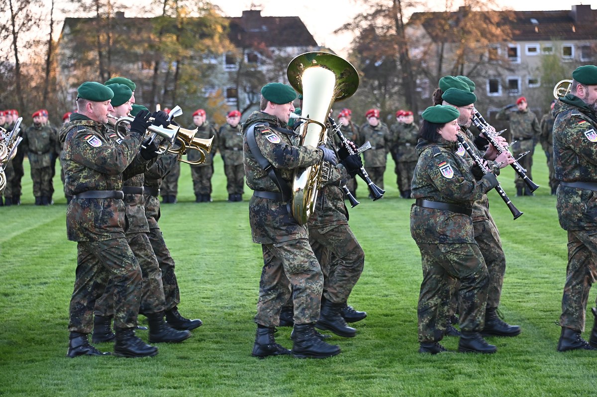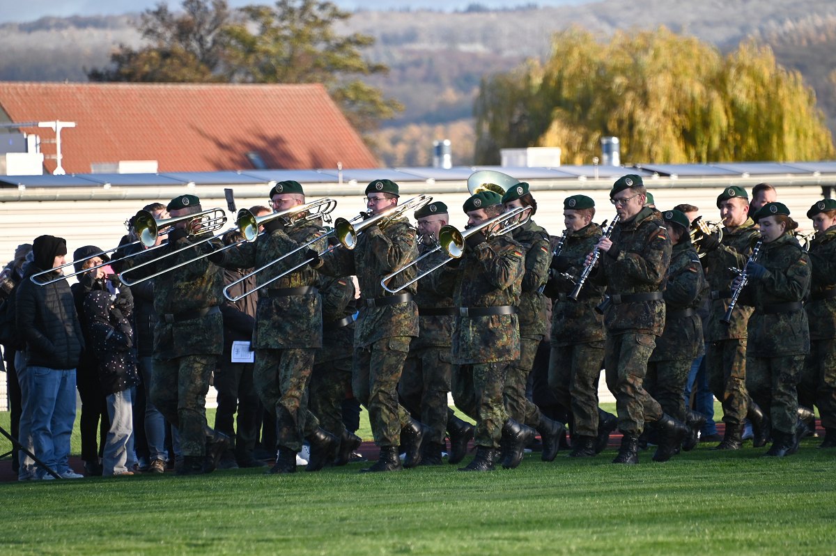 Höxter (TKu). In der Hammerstein-Equord-Kaserne in Höxter fand am vergangenen Donnerstagnachmittag erstmals seit der Umbenennung der Liegenschaft ein feierliches Gelöbnis auf dem großen Sportplatz statt. 220 Rekrutinnen und Rekruten der Schule für Feldjäger und Stabsdienst aus Hannover, 40 Rekruten des ABC-Abwehrregiments 7 aus Höxter und 30 Rekruten des Panzerpionierbataillons 1 aus Holzminden waren angetreten, um vor mehr als 1.000 Zuschauerinnen und Zuschauern ihr Treueversprechen gegenüber der Bundesrepublik Deutschland abzulegen. Für alle Beteiligten war es ein besonderer Moment, der von Musik, Tradition und spürbarer Anspannung begleitet wurde.