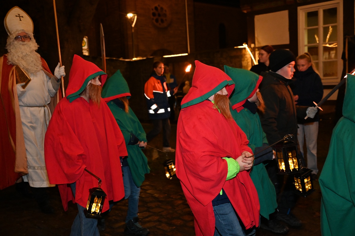 Ottbergen (TKu). Der wohl meistbesuchte Nikolaus- bzw. Weihnachtsmarkt im Kreis Höxter an diesem Wochenende: Der Ottberger Nikolausmarkt vom 5. bis 7. Dezember 2025 ist wieder sehr gut eingeschlagen und sorgte für echte vorweihnachtliche Stimmung bei den Menschen in Ottbergen im Wiemersmeyerschen Hof und im KuStall. Besonders der Nikolaustag am 6. Dezember wurde zu einem Höhepunkt des Wochenendes: Alleine mehr als 500 Menschen kamen zum Bahnhof, um den Nikolaus festlich in Empfang zu nehmen. Im Wiemers Meyerschen Hof trafen die Nikolauspilger nochmals auf mehr als 100 Menschen. Der Hof platzte in diesem Jahr rekordverdächtig aus „allen Näthen“!