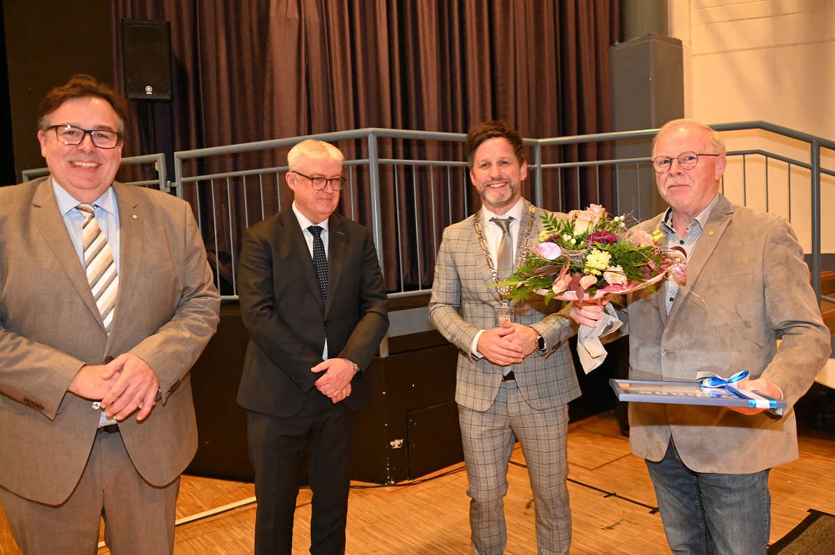 Mit drei Urkunden und Blumensträußen wurden zunächst die Ehrenamtspreisträger gewürdigt. Als einen „Mann, der anpackt“ bezeichnete Wenkel den ersten Preisträger, Lothar Rose aus Jakobsberg. In seiner Laudatio hob Bürgermeister Wenkel insbesondere Roses unermüdlichen Einsatz für sein Dorf hervor. Ob als kirchlicher Funktionsträger, für seine Renovierungsarbeiten an der Kapelle, dem Pfarrheim, dem Kriegerdenkmal oder am örtlichen Brunnen, Rose sei stets zur Stelle, wenn praktisch angepackt werden müsse. Mit handwerklichem Können setzte er Natursteinmauern instand, half beim Aufbau von Liegebänken und unterstützte zahlreiche Maßnahmen, die das Dorfleben verschönern. Auch beruflich habe er Spuren hinterlassen: als langjähriger Mitarbeiter des Bauhofs, als Hauswart im Asylbereich sowie als Hausmeister der Beverunger Schulen. Zudem bereichert er mit seinen Brüdern als Musiker regelmäßig Feste im Ort. Der Ehrenamtspreis geht an Lothar Rose, einen Mann, „der mit Taten überzeugt und mit seinem Wesen bereichert“, so der Bürgermeister.