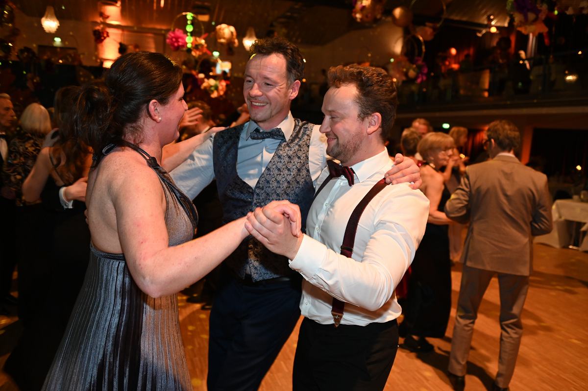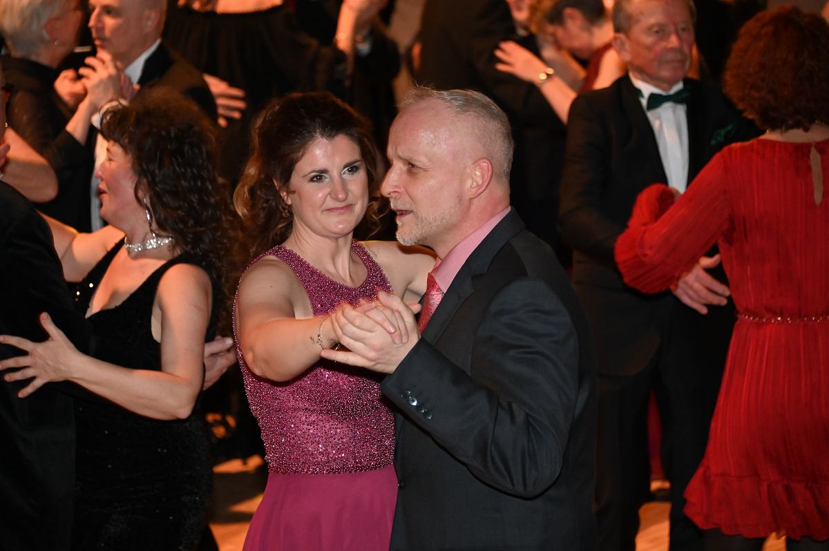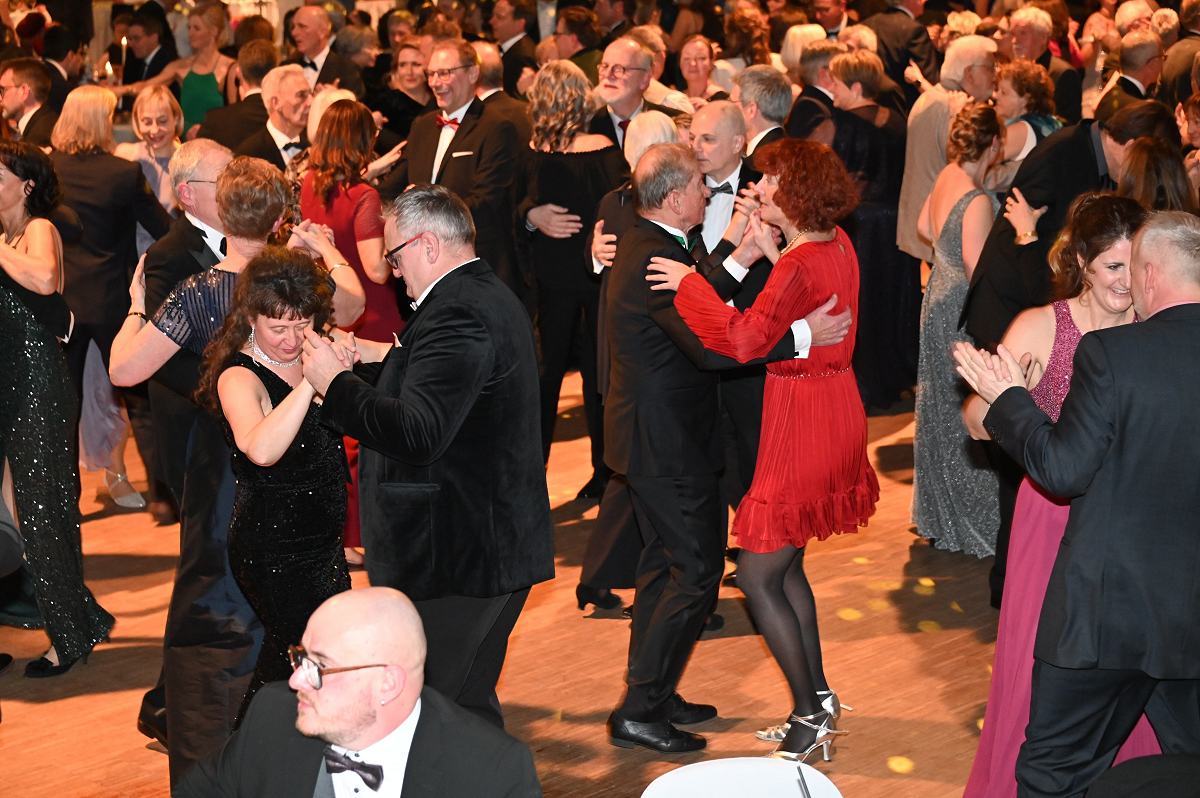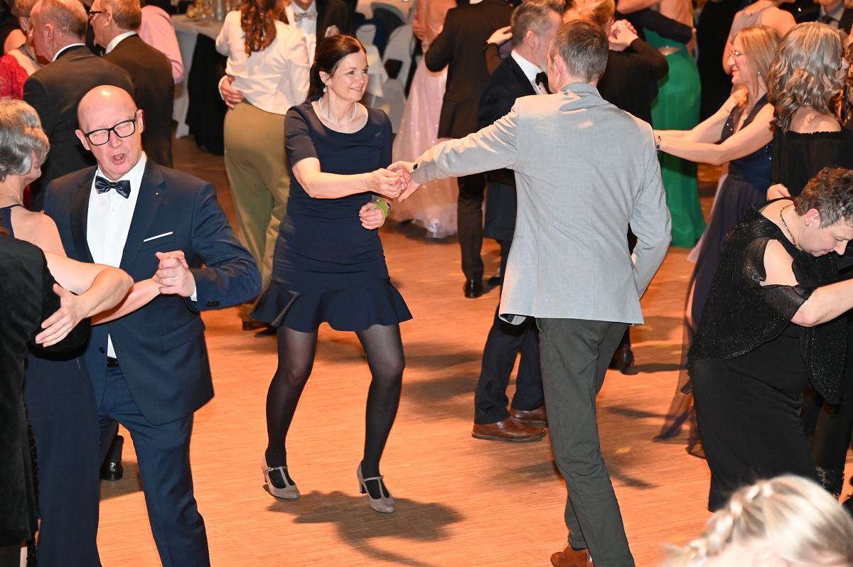 Doch statt Enttäuschung folgte Begeisterung: Ball-Besucher Daniel Hesse von der Tanzschule Hesse aus Heiligenstadt sprang spontan ein und „rettete“ den zweiten Hauptact. Mit einer Line-Dance-Vorführung, Animationen und einem eigenen Tanzpaar brachte Hesse die Stimmung zum Kochen. „Wir haben uns das aus den Fingern gesogen“, sagte er schmunzelnd und traf damit genau den Geschmack des Publikums. Besonders der Auftritt des Tanzpaares Diana und Michael aus Heiligenstadt zum Song „Pretty Woman“ sorgte für großen Applaus. Insgesamt war die Gruppe mit 26 Personen vertreten. Für Daniel Hesse schloss sich dabei ein Kreis: Bereits vor 15 Jahren hatte er in der Stadthalle Beverungen Tanzkurse gegeben. Seine Verbundenheit zum Kulturball sei bis heute geblieben. Für die musikalische Begleitung sorgten Jürgen Becker und seine Amorados Showband. Die achtköpfige Formation überzeugte erneut mit ihrer großen musikalischen Bandbreite und direkter Publikumsnähe. Die Tanzfläche blieb daher durchgehend gut gefüllt, wenn sie vom Walzer bis Disco-Fox mit einer großen Bandbreite an bester Ball-Musik begeisterten.