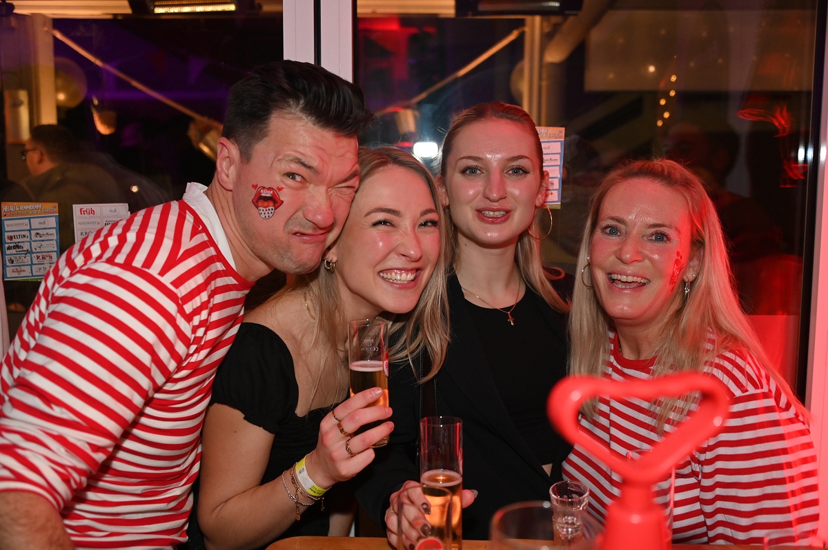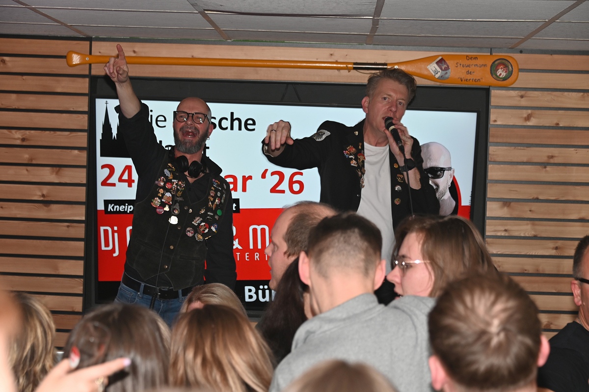 Höxter (TKu). 200 „Kölsche-Nacht-Besucher“ feierten die Karnevalsmaus in den Bürgerstuben in Höxter. Mächtig viel Stimmung herrschte Samstagnacht bei der Kölschen Nacht in den Bürgerstuben in Höxter. In uriger, rot-weißer Kneipenatmosphäre sorgte das DJ-Duo Marcus (Stiera) und Markus (Finger) aus Höxter für echtes kölsches Feeling und eine ausgelassene Feier. Neben altbekannten Kölner Musik-Klassikern von den Black Fööss, den Höhnern, Brings oder den Paveiern präsentierten die beiden DJs vor allem die neuesten Hits aus dem Kölner Karneval. Die Gäste sangen, klatschten und feierten begeistert mit. Per Applaus-Barometer wählte die rot-weiße Partygemeinde nach Mitternacht den neuen offiziellen Höxteraner Sessions-Hit. Für alle, die bei den neuen Liedern textlich noch unsicher waren, hatte das DJ-Duo vorgesorgt und Zettel mit den Refrains der acht Songs verteilt, die ausgewählt werden konnten. Am Ende setzte sich die „Karnevalsmaus“ von Druckluft gegen sieben weitere Titel durch. Zur Auswahl standen außerdem „Eau de Cologne“ von Cat Ballou, „Weil mir Kölsche sind“ von den Räubern, „C’est la vie“ von den Klüngelköpp, „Konfettirään“ von den Paveiern, „Papajei“ von Stadtrand, „Adios Amigos“ von Kasalla sowie „CocaColaRum“ von Die Tünnesse.