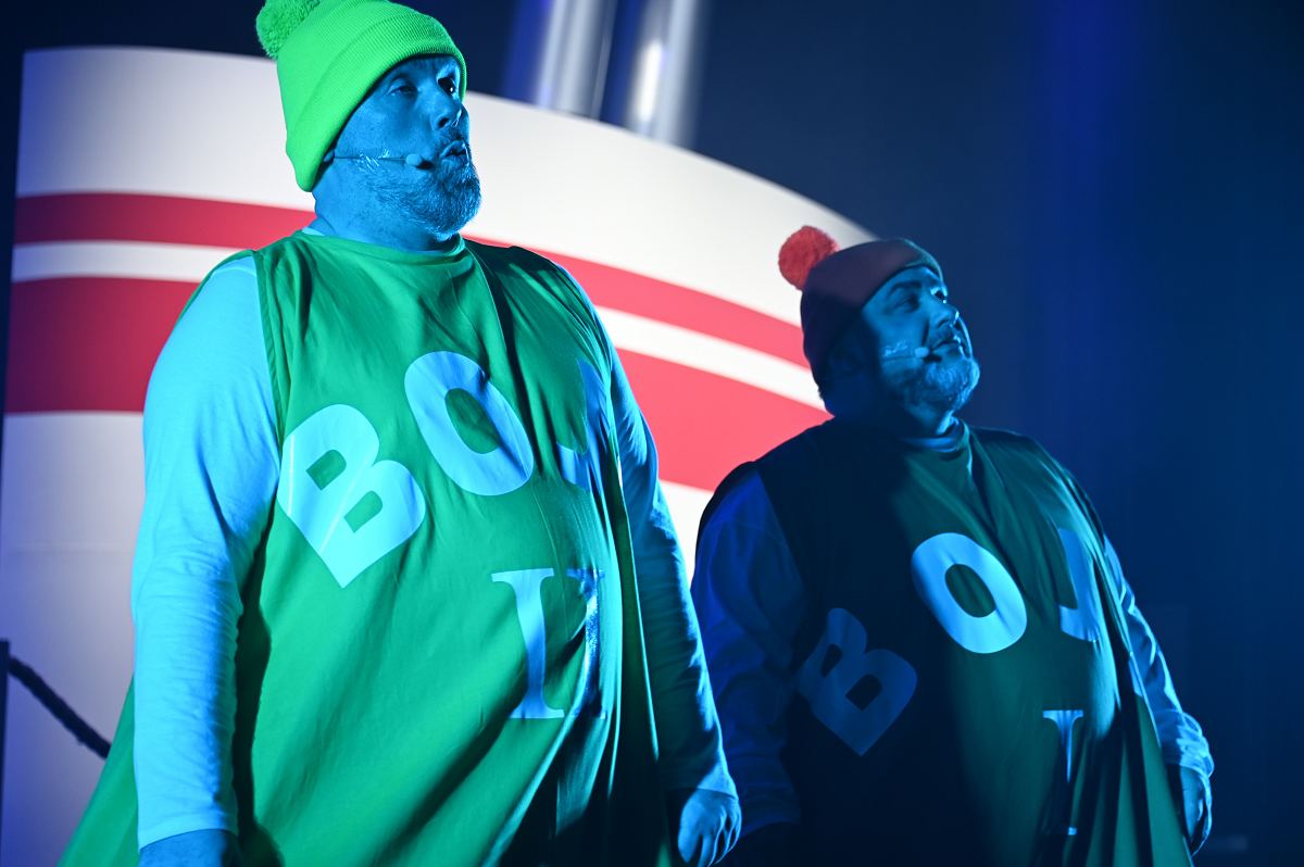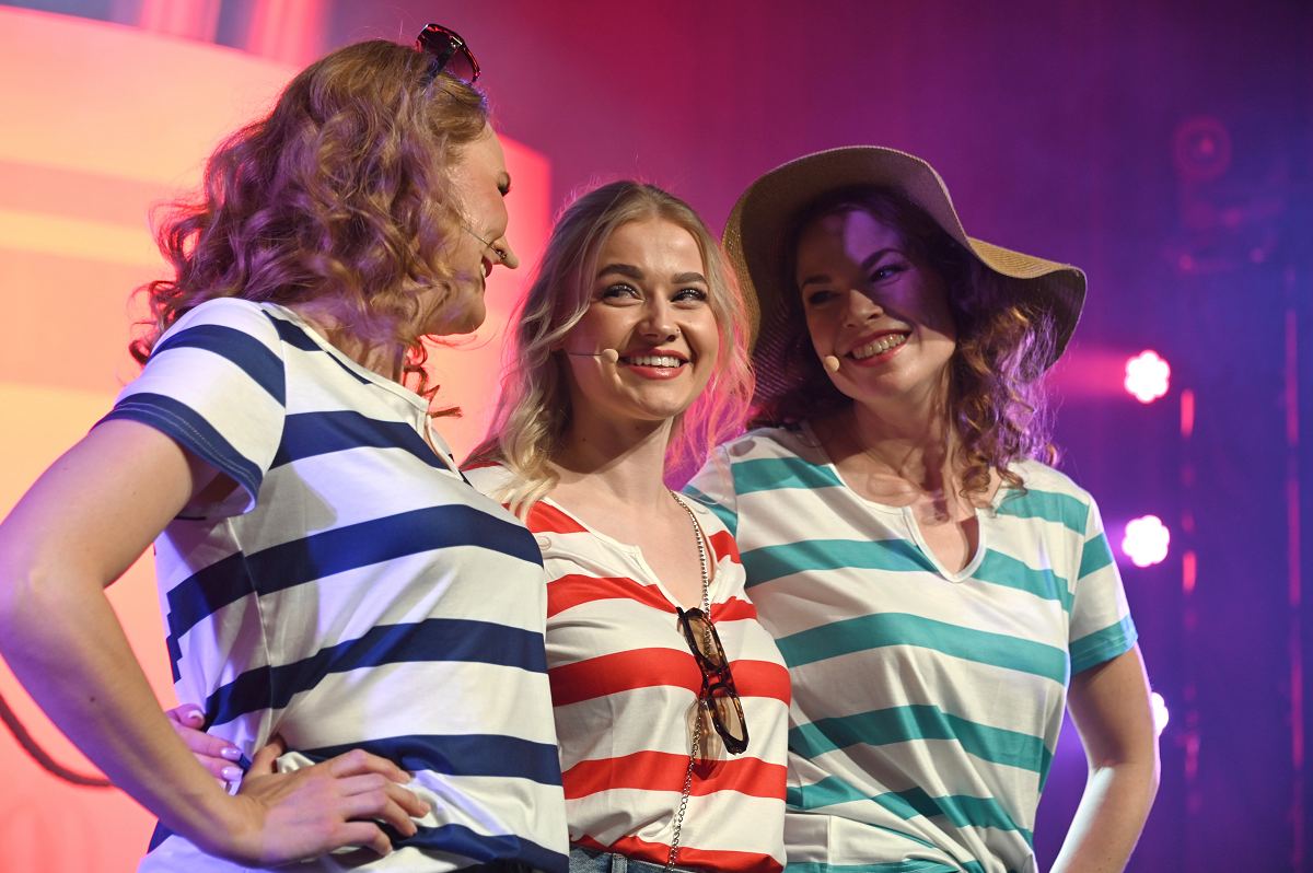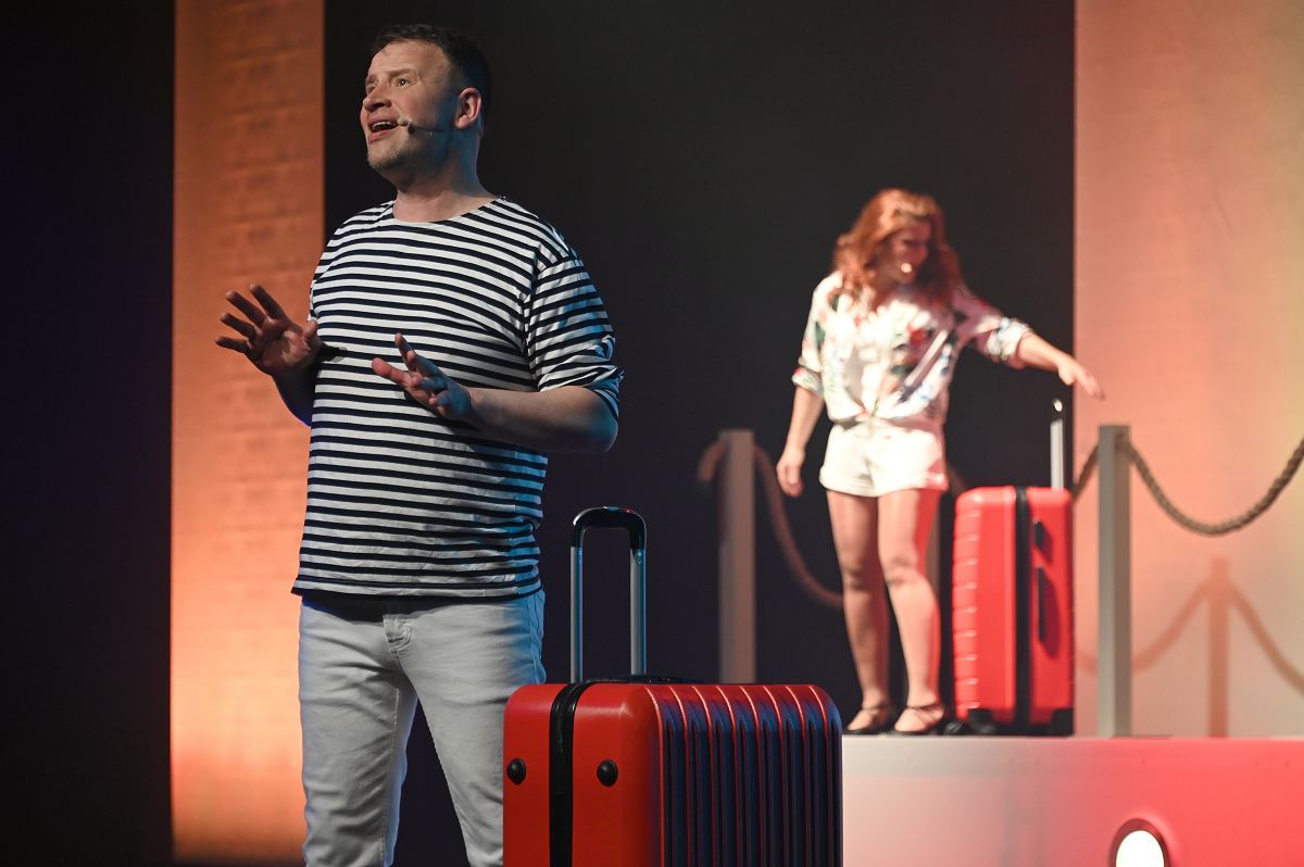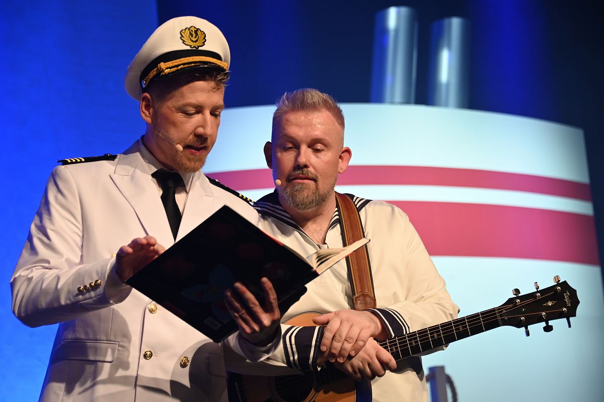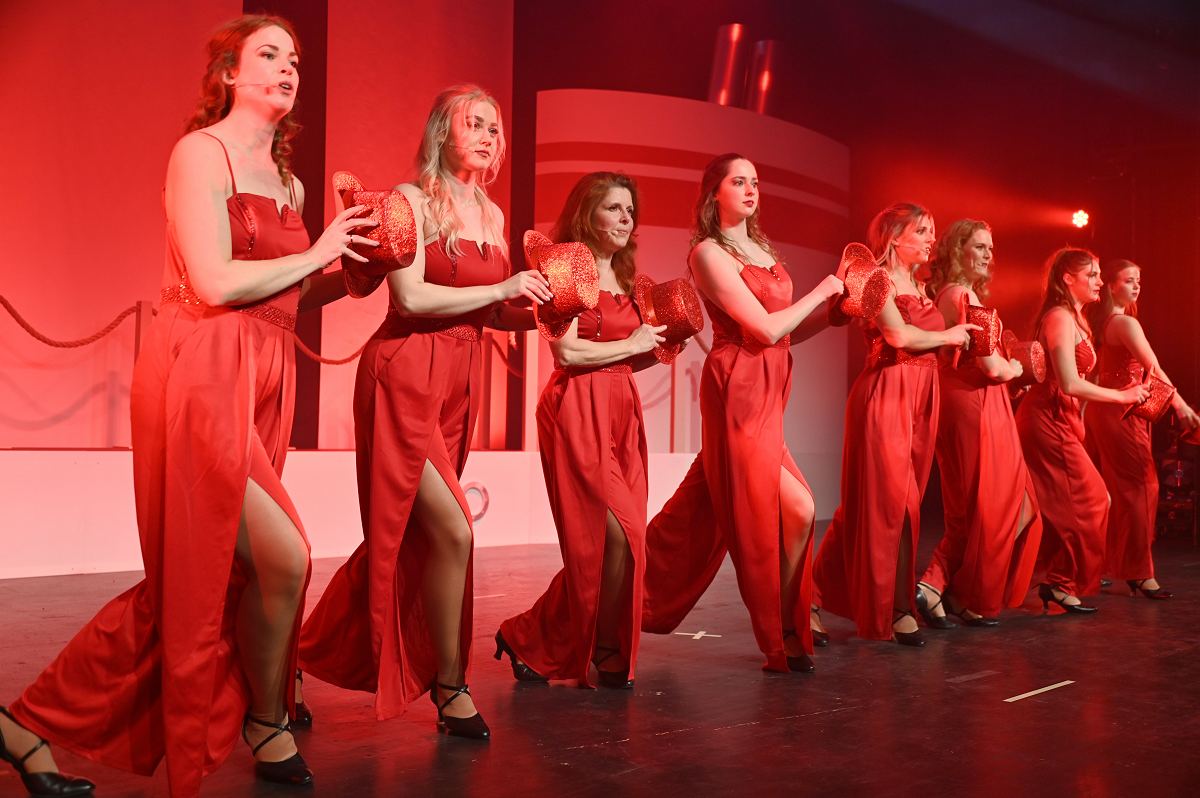 Auf der Bühne überzeugte ein großes Ensemble aus erfahrenen Darstellerinnen und Darstellern sowie neuen Gesichtern. Zu sehen waren Birgit Auel, Thomas Golüke, Sandra Hake, Sebastian Hegener, Pia Hermanns, Martin Klinkemeier, Sergej Rau, Björn Schwarzer, Maria Sievers und Carina Stickel. Frischen Wind brachten zudem Mika Germa, Xenia Heidebrecht, Alina Schmieder und Ida Sonnemann, die gemeinsam mit dem Ensemble glänzten. In zweieinhalb Stunden geht es in der Stadthalle einmal rund um die Welt, möglich gemacht durch das Kreuzfahrtschiff des Schlosstheaters. Nach dem Einchecken führt Kapitän Björn Tegeler das Publikum von Italien über Ägypten und Afrika bis nach Südamerika und New York, bevor es wieder zurück in heimische Gewässer geht. Im Mittelpunkt stehen dabei nicht nur die Reiseziele, sondern auch das Leben an Bord: Szenen in der Barbara Bar, sportliche Einlagen im Fitnessstudio („Bauch, Beine, Po“), Zauberkunst und humorvolle Begegnungen mit skurrilen Bojen und Leuchttürmen sorgen immer wieder für Schmunzeln und Lacher.