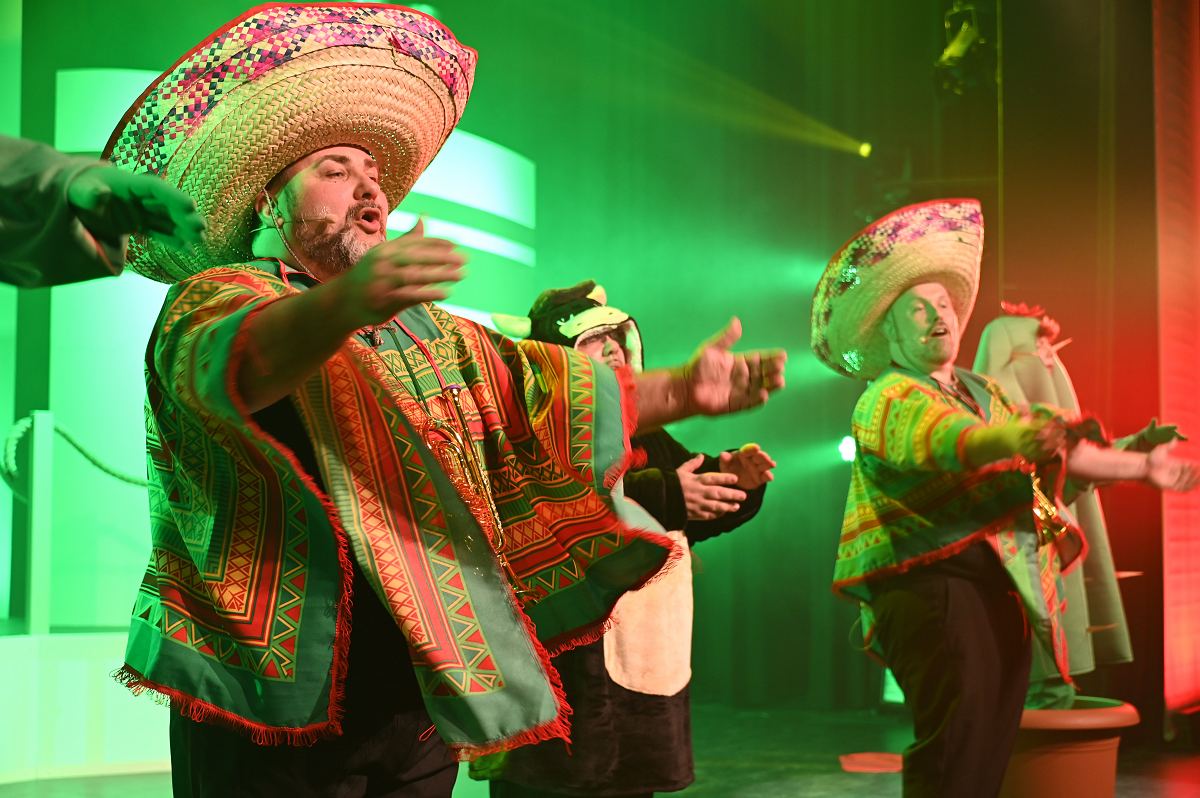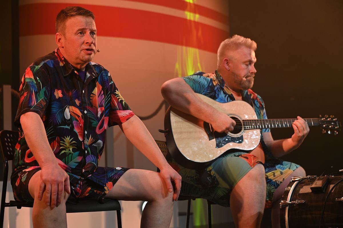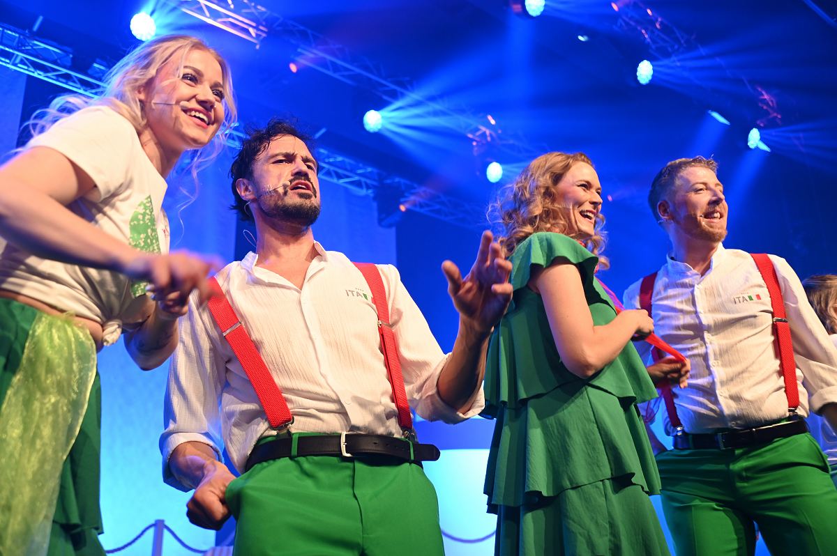 Höxter (TKu). Schon die Koffer gepackt? Diese Frage stellte sich am vergangenen Wochenende in der Residenz-Stadthalle Höxter, zumindest gedanklich. Mit einer gelungenen Generalprobe mit Publikum am Freitag und einer ausverkauften mitreißenden Premiere am Samstag feierte das Schloßtheater Fürstenberg den erfolgreichen Start seiner neuen Revue „Kreuz & Quer – Liegst Du noch oder schwankst Du schon?“. Bereits bei der öffentlichen Generalprobe am Freitag zeigte sich: Diese musikalische Kreuzfahrt kommt an. Das Publikum reagierte an beiden Abenden begeistert, Standing Ovations und lautstarke Zugaberufe hallten durch die Residenz-Stadthalle Höxter. 600 Besucherinnen und Besucher bei der ersten Vorstellung ließen sich von der energiegeladenen bunten Revue mitreißen.